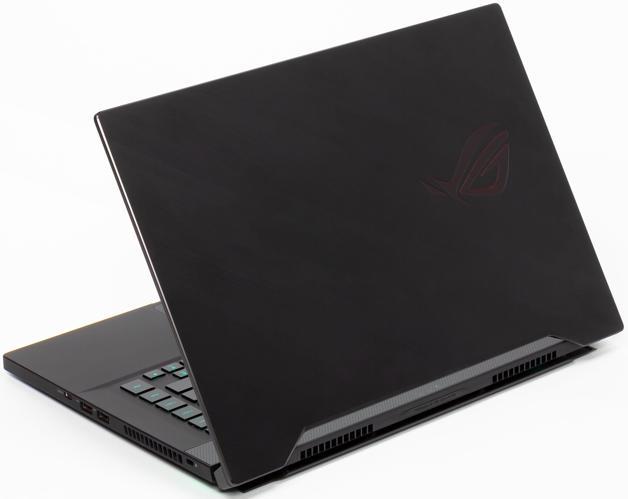 Добавим, что в отличных от нашей конфигурациях Asus ROG Zephyrus S GX502 может быть оснащен видеокартой Nvidia GeForce RTX 2070 8 ГБ (тогда у него будет индекс GW), а также экраном с частотой 240 Гц, объемом памяти 16 ГБ и накопителем SSD емкостью 256 или 1024 ГБ.