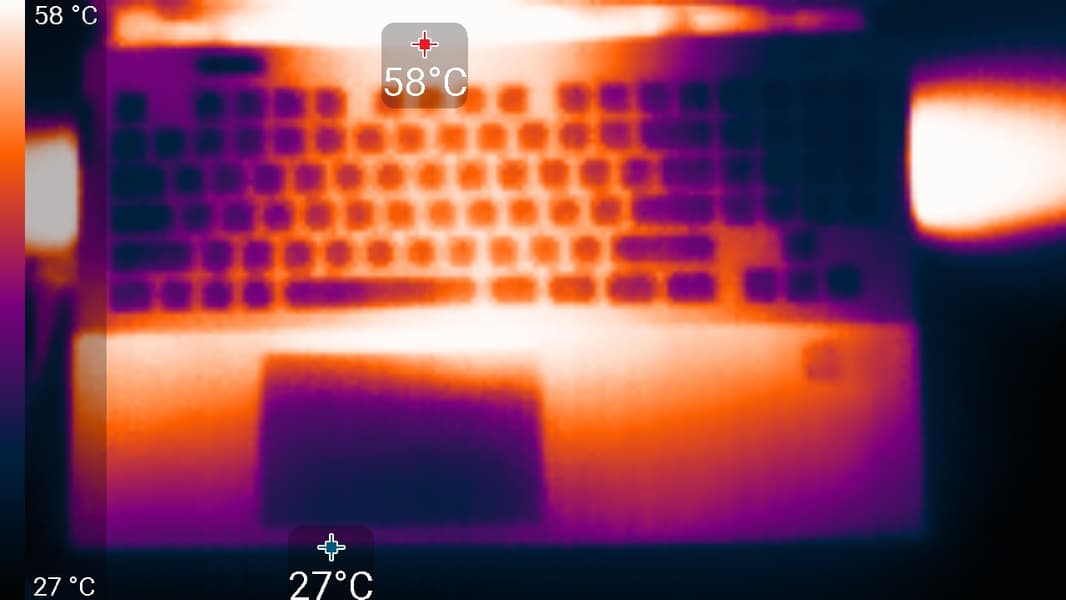 Под максимальной нагрузкой работать с клавиатурой некомфортно, так как места под запястьями ощутимо нагреваются. Держать ноутбук на коленях тоже неприятно, поскольку колени частично соприкасаются с областями высокого нагрева. Колени также могут перекрыть заборные вентиляционные решетки (чего не происходит при размещении ноутбука на ровной твердой поверхности), а это может вызвать перегрев ноутбука. Несмотря на всяческие предохранительные меры, перегрев все равно может привести к неприятным последствиям. Блок питания греется очень сильно, поэтому при долговременной работе с высокой производительностью обязательно нужно следить, чтобы он не был ничем накрыт.