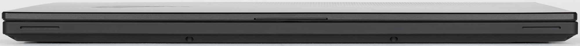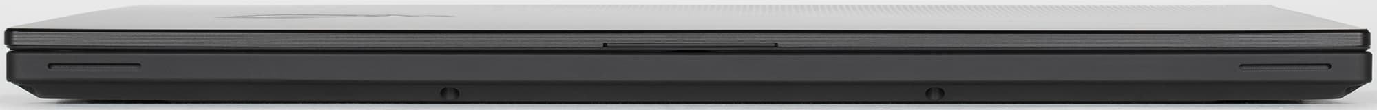 На днище корпуса можно увидеть вентиляционные отверстия, расположенные в основном у кулеров, и площадь их невелика. Однако, как мы уже сказали, при работе холодный воздух можно забирать и из-под приподнятой клавиатуры. Также у переднего края корпуса на днище выведены отверстия двух основных динамиков (всего их у ноутбука шесть).
