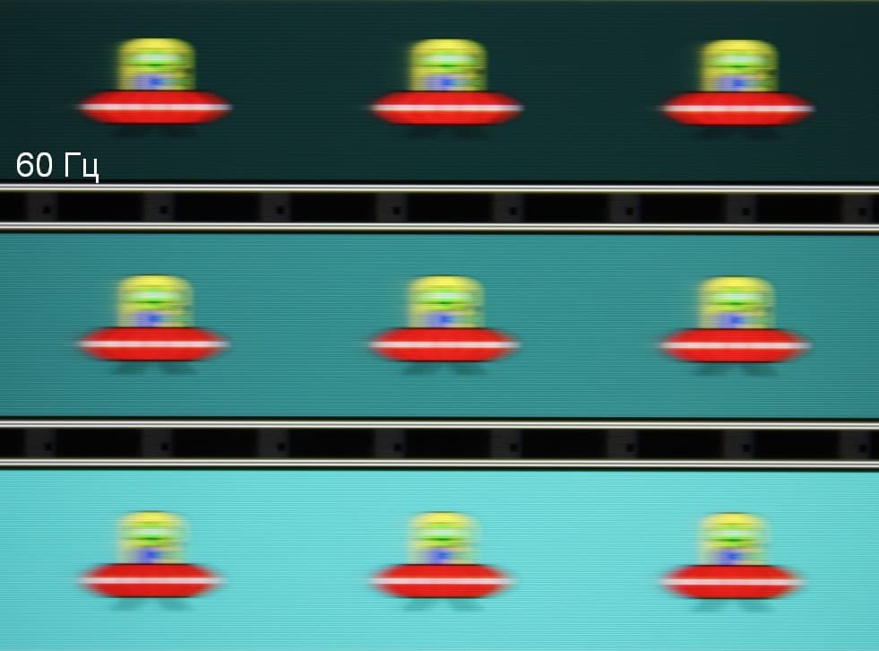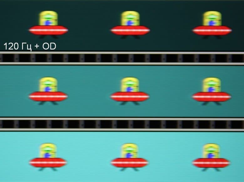 Видно, что при прочих равных условиях четкость изображения повышается по мере роста частоты обновления и степени разгона, но даже в случае разгона артефактов практически не видно.