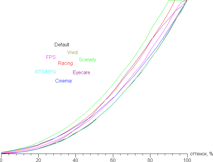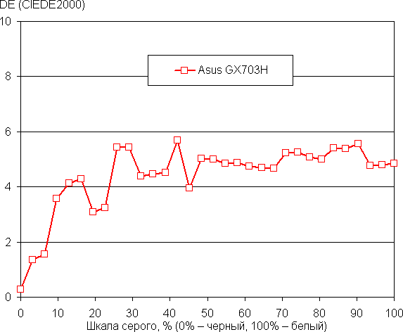 Отметим, что производитель указывает время отклика 3 мс, и, действительно, переходы между некоторыми полутонами серого выполняются даже за меньшее время.