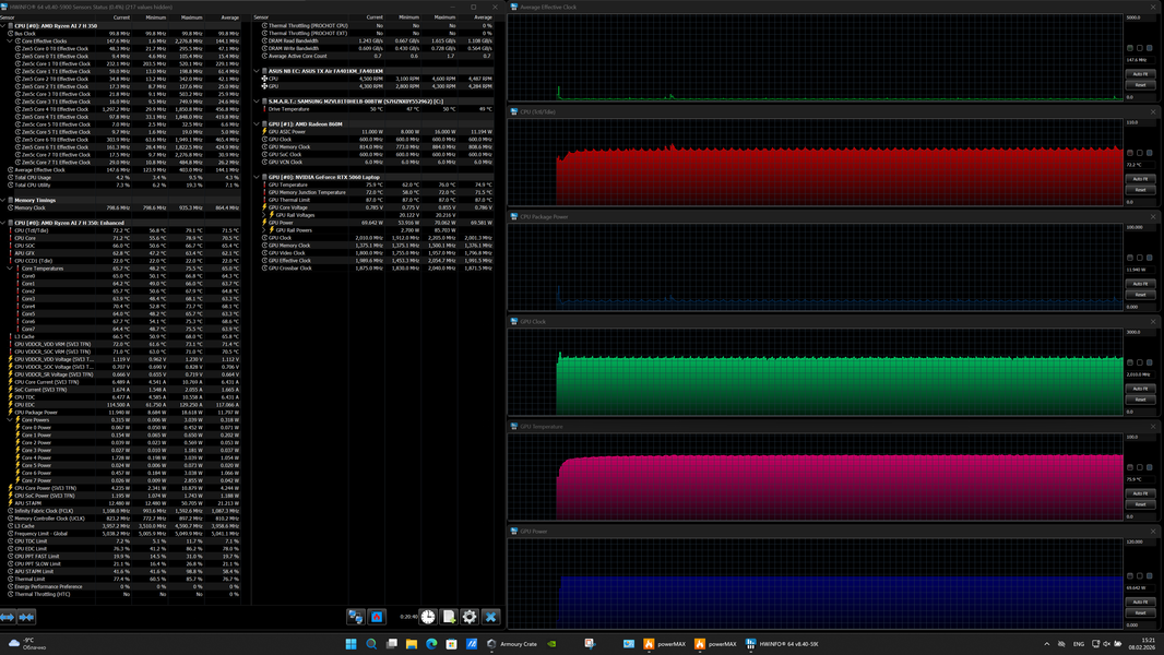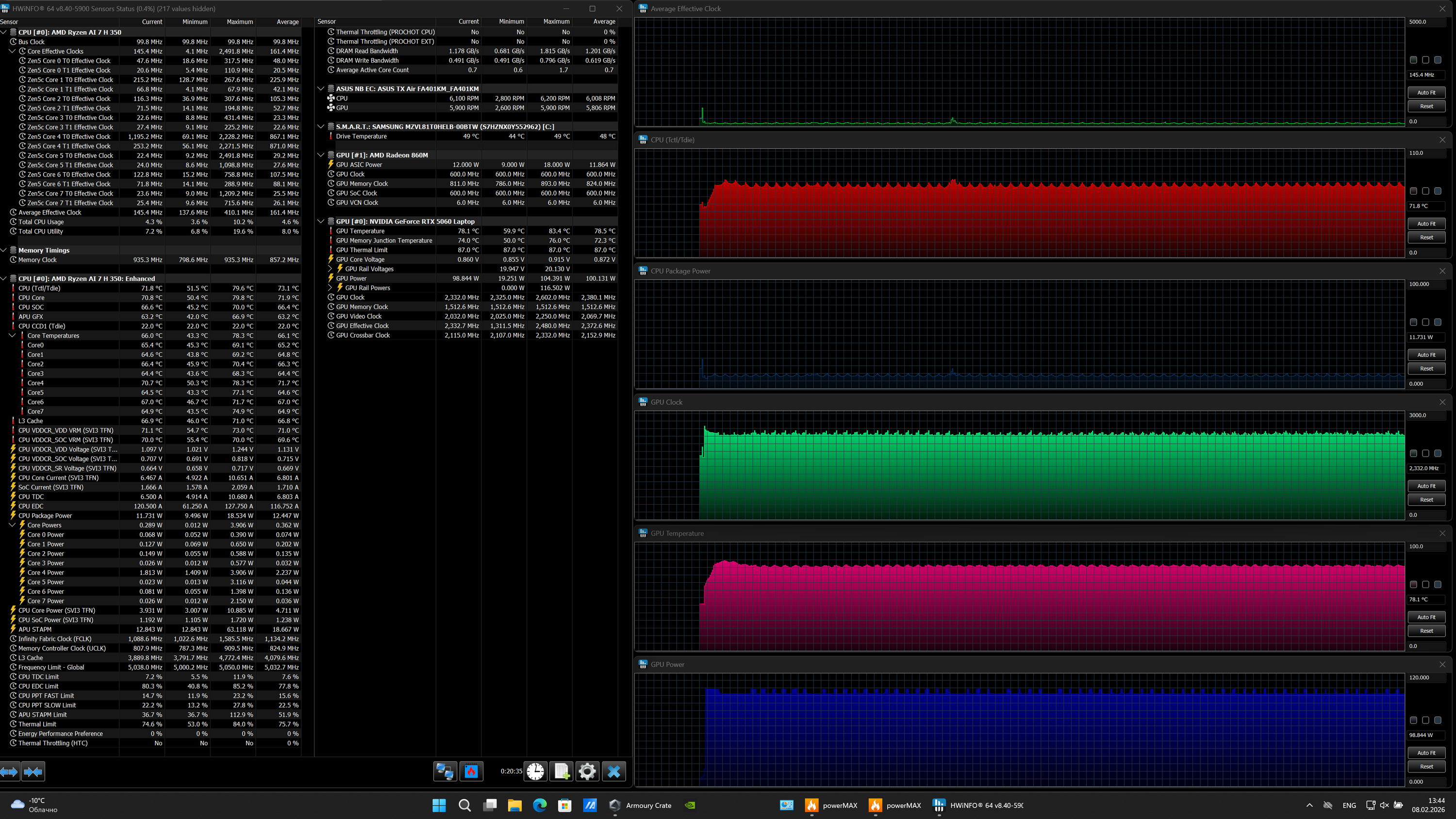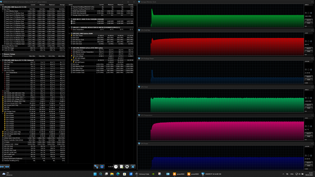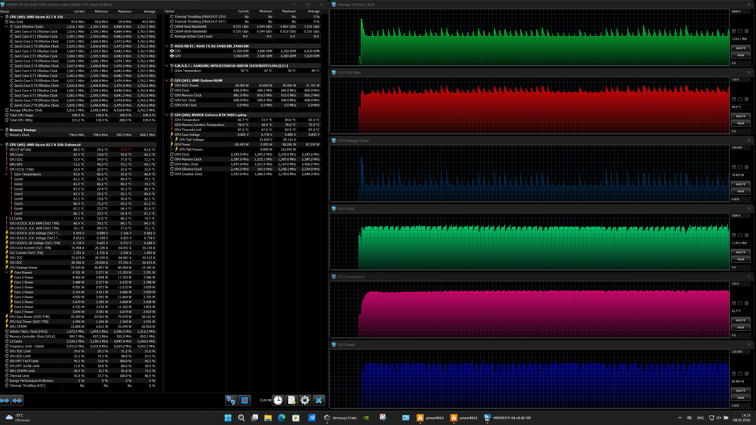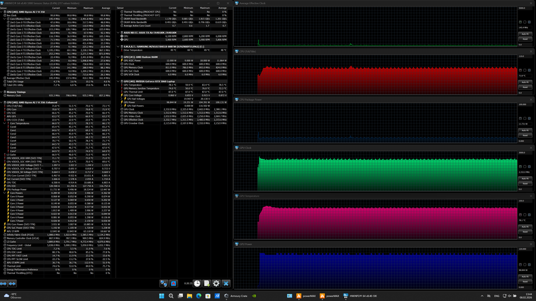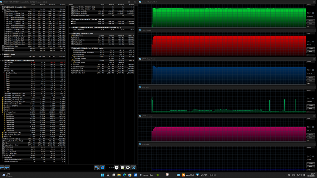 | Процессор | AMD Ryzen AI 7 H 350, 8 двухпотоковых ядер: 4 × Zen 5 (2—5 ГГц) + 4 × Zen 5c (2—3,5 ГГц); TDP 28 Вт (15—54 Вт); Tjmax 100 °C; NPU 50 TOPS | |