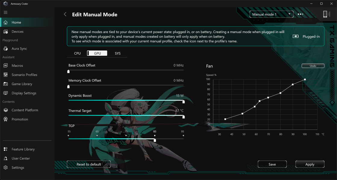 Помимо стандартных пресетов имеется режим ручной настройки системы охлаждения (СО). Такая возможность предусмотрена для кулера центрального процессора...