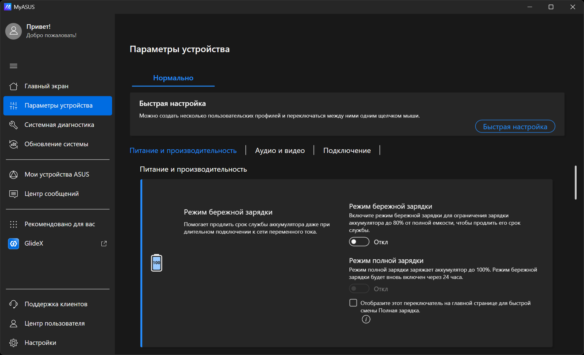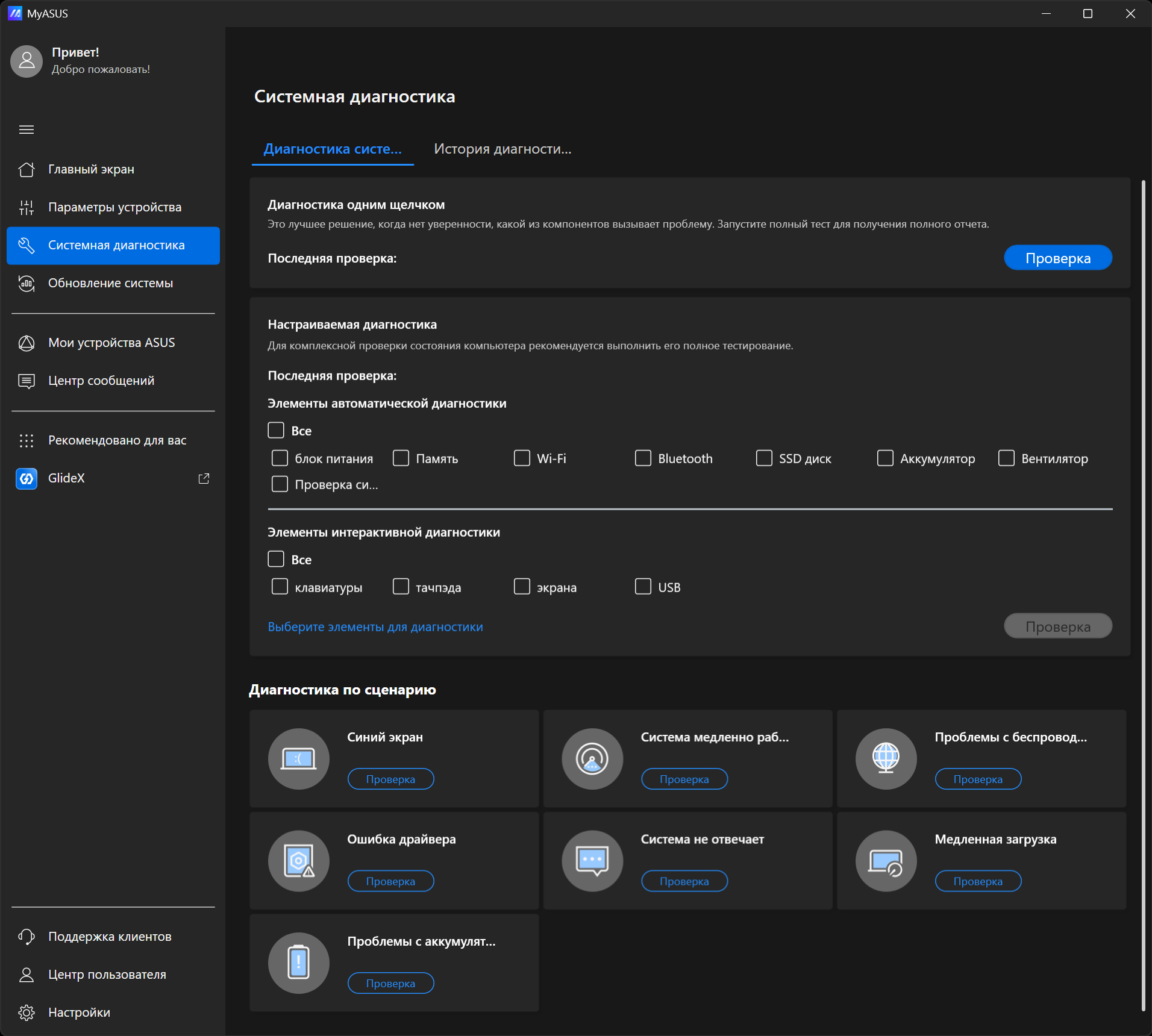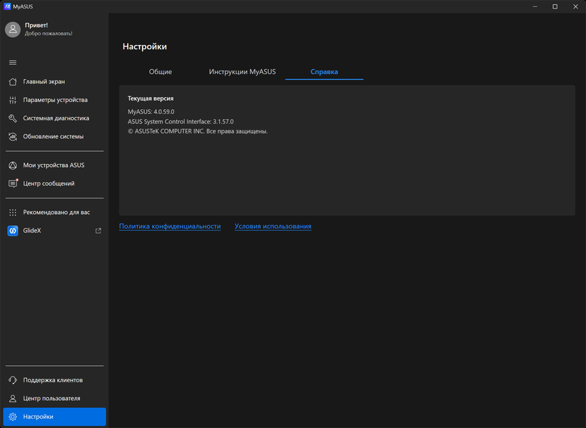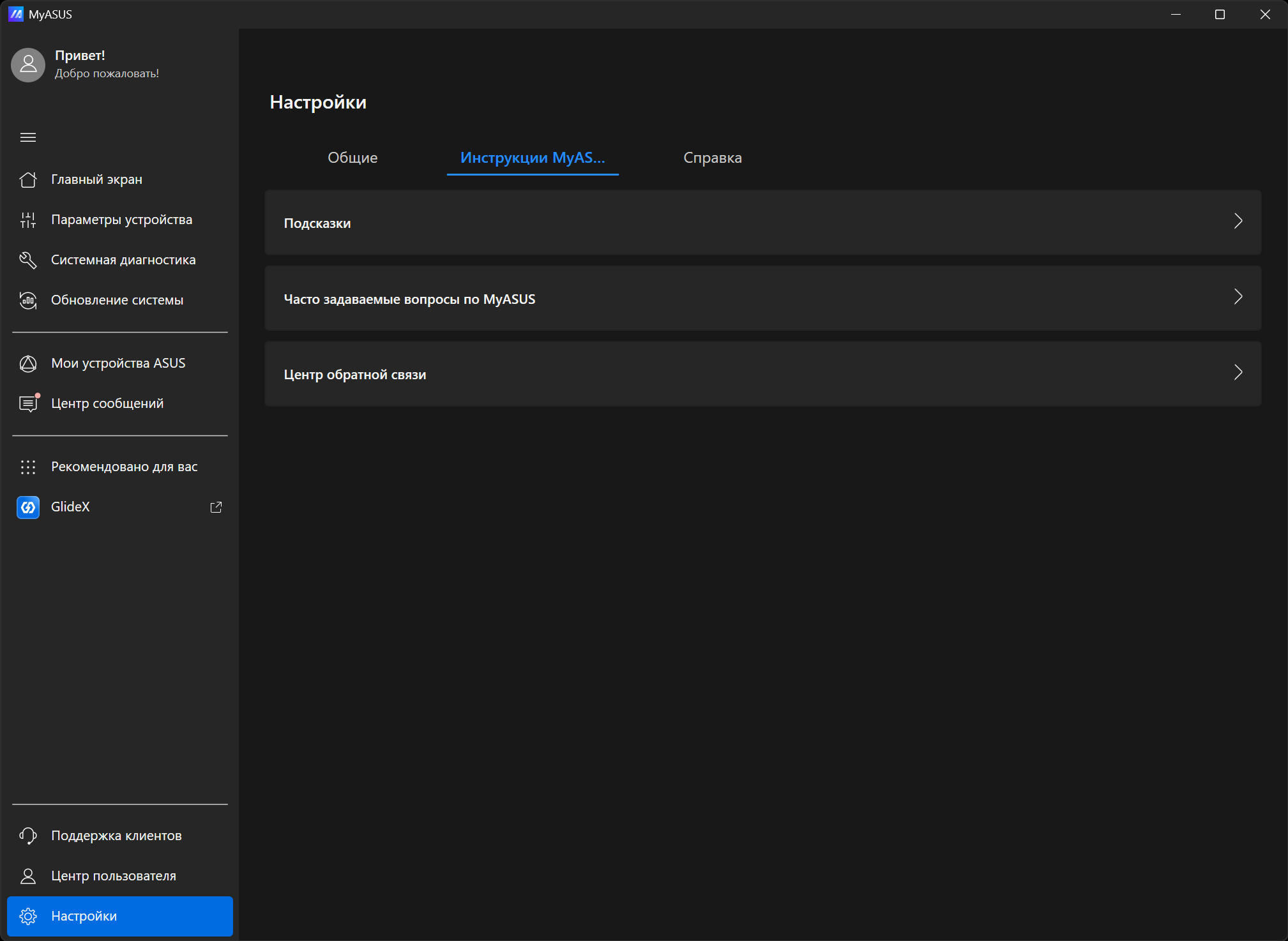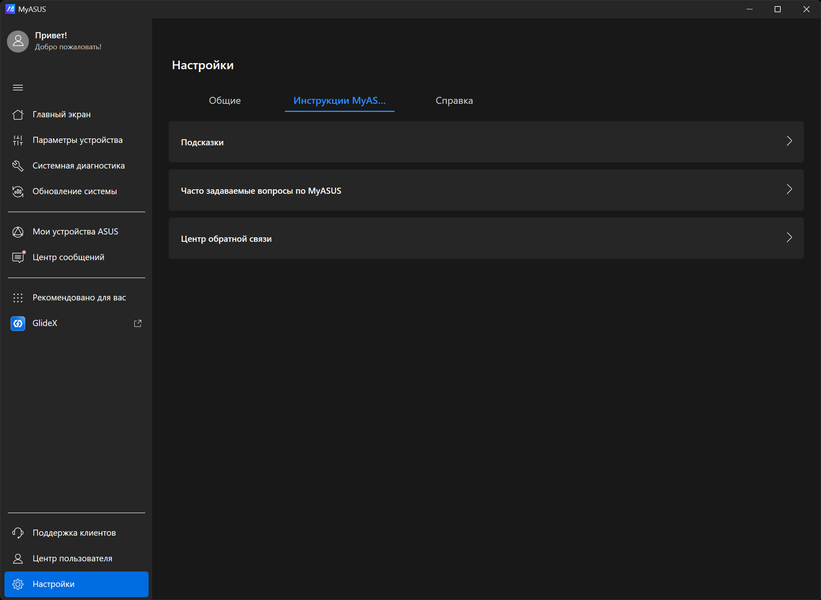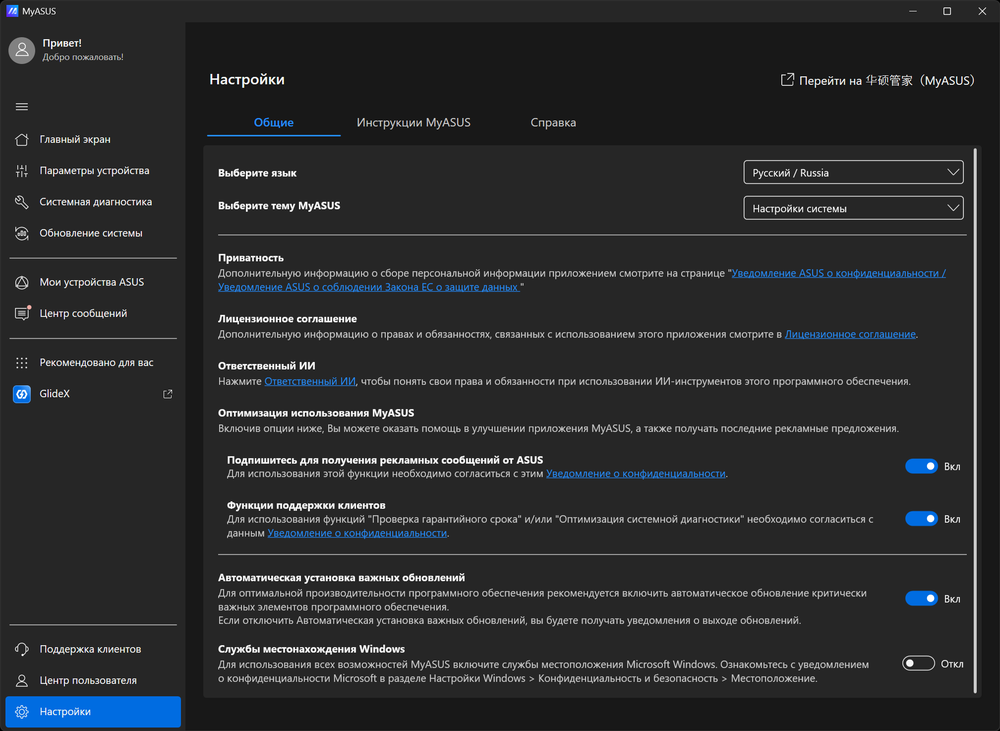 Стиль оформления и внешний вид окон приложения сильно отличаются от того, к чему мы привыкли в ноутбуках Asus на территории России. Впрочем, вертикальное и горизонтальное меню не отличаются ни расположением, ни наименованием позиций.