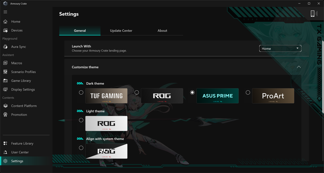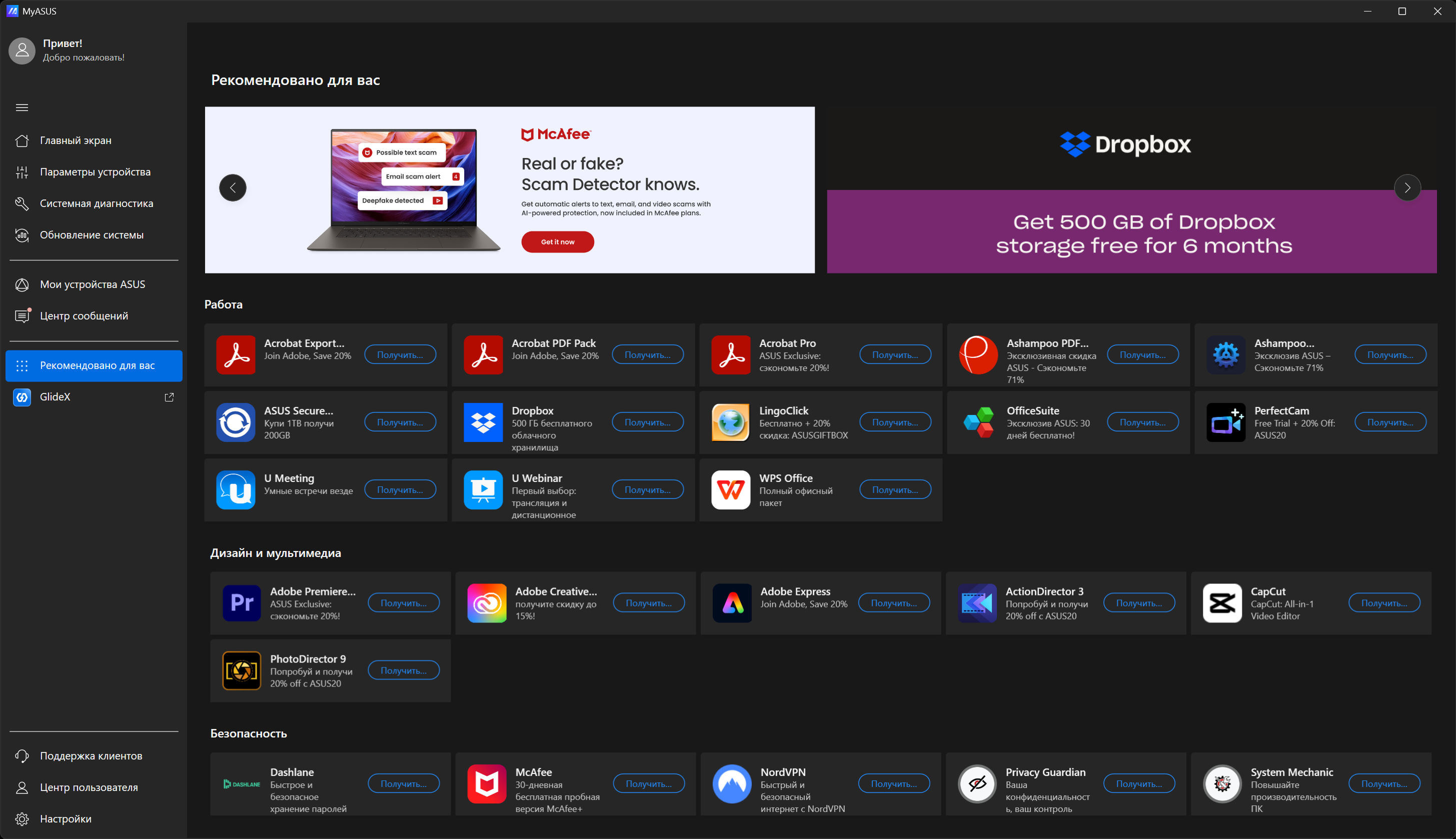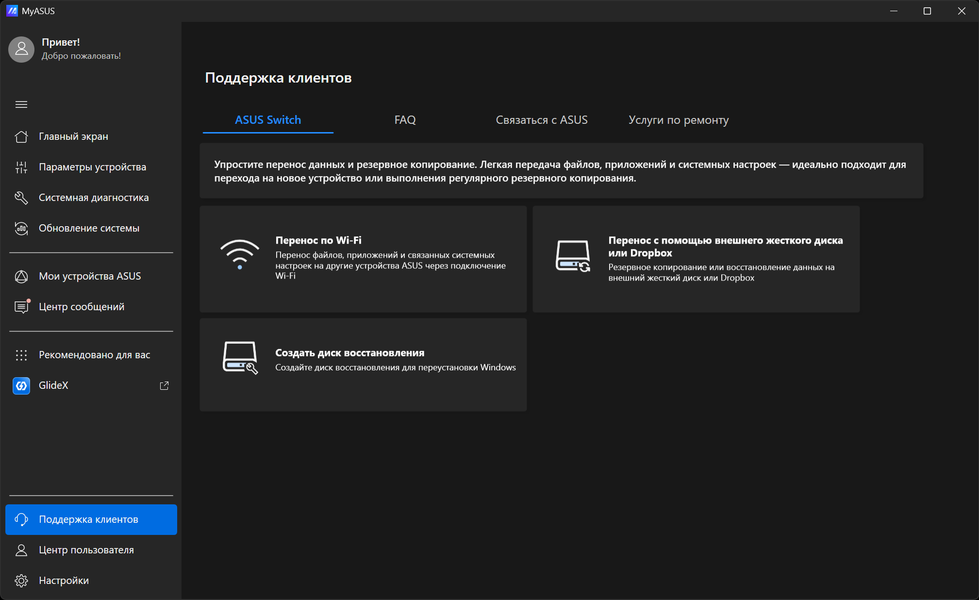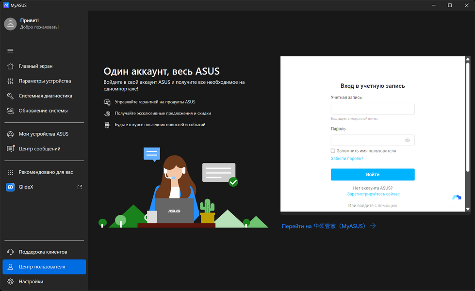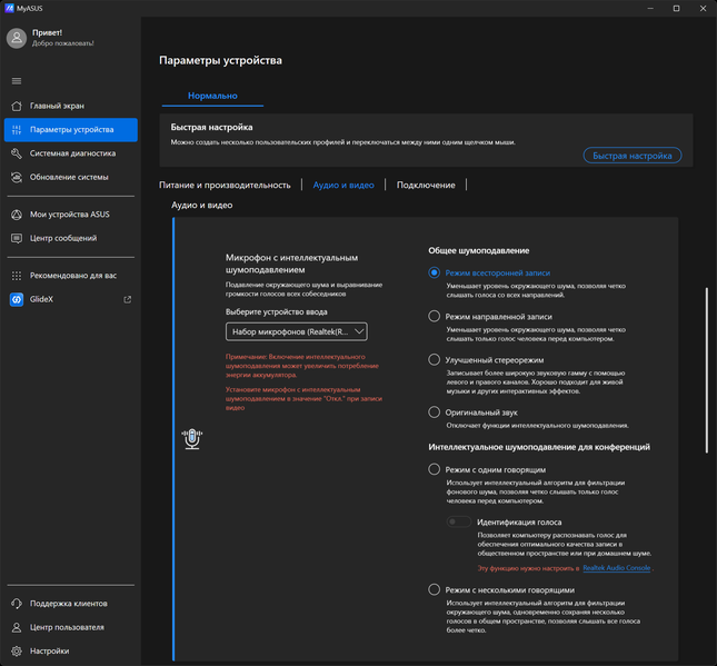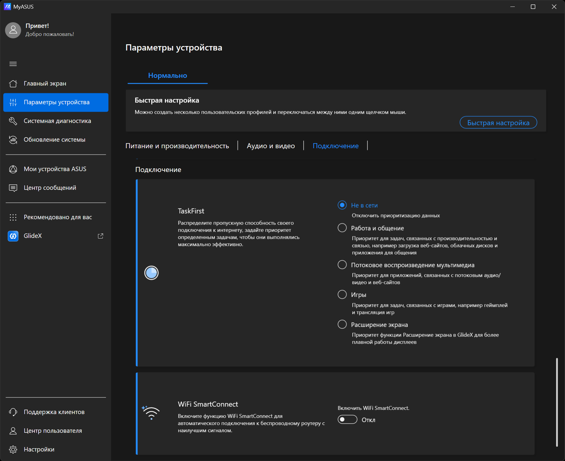 Стиль оформления и внешний вид окон приложения сильно отличаются от того, к чему мы привыкли в ноутбуках Asus на территории России. Впрочем, вертикальное и горизонтальное меню не отличаются ни расположением, ни наименованием позиций.