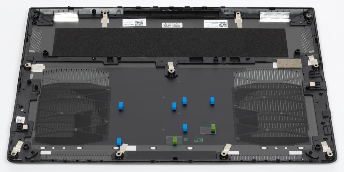 Крышка металлическая, изготовлена из сплава алюминия и магния; днище, боковины и лицевая панель — пластмассовые. Крышка без труда открывается одной рукой, корпус при этом чуть сдвигается назад: масса ноутбука довольно скромная, и корпус не является полноценным противовесом.