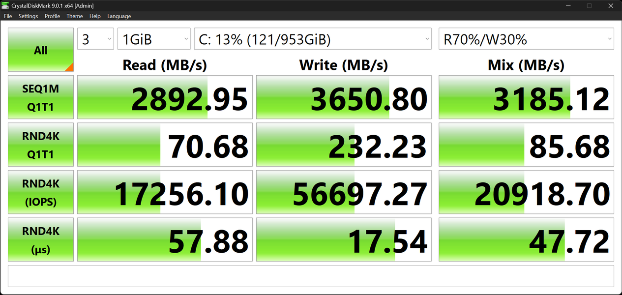 | Накопители | 1 ТБ Samsung, PCIe 4 ×4 | 1 ТБ Micron Pyrite, PCIe 4 ×4 | 1 ТБ Kioxia, PCIe 4 ×4 |