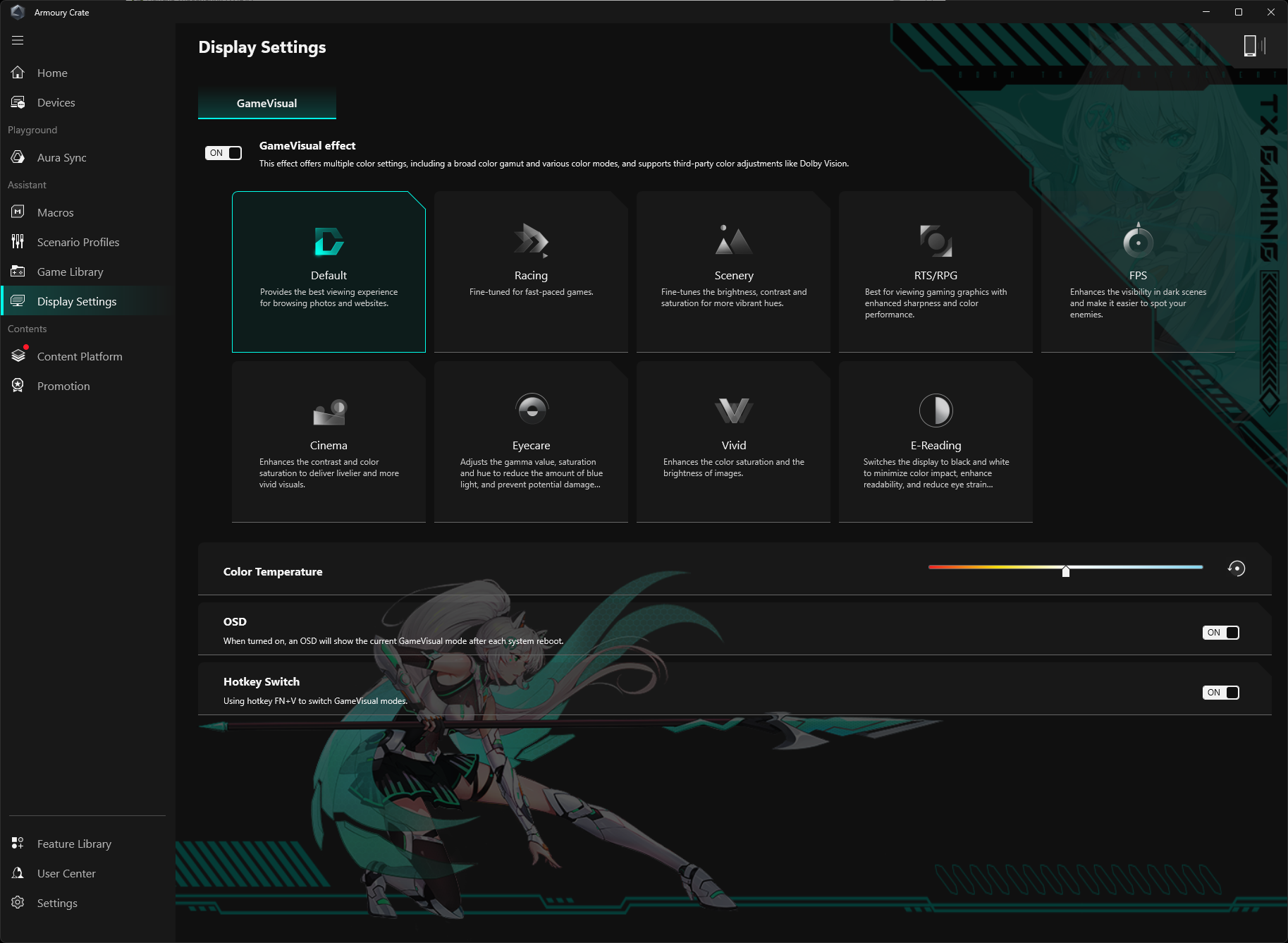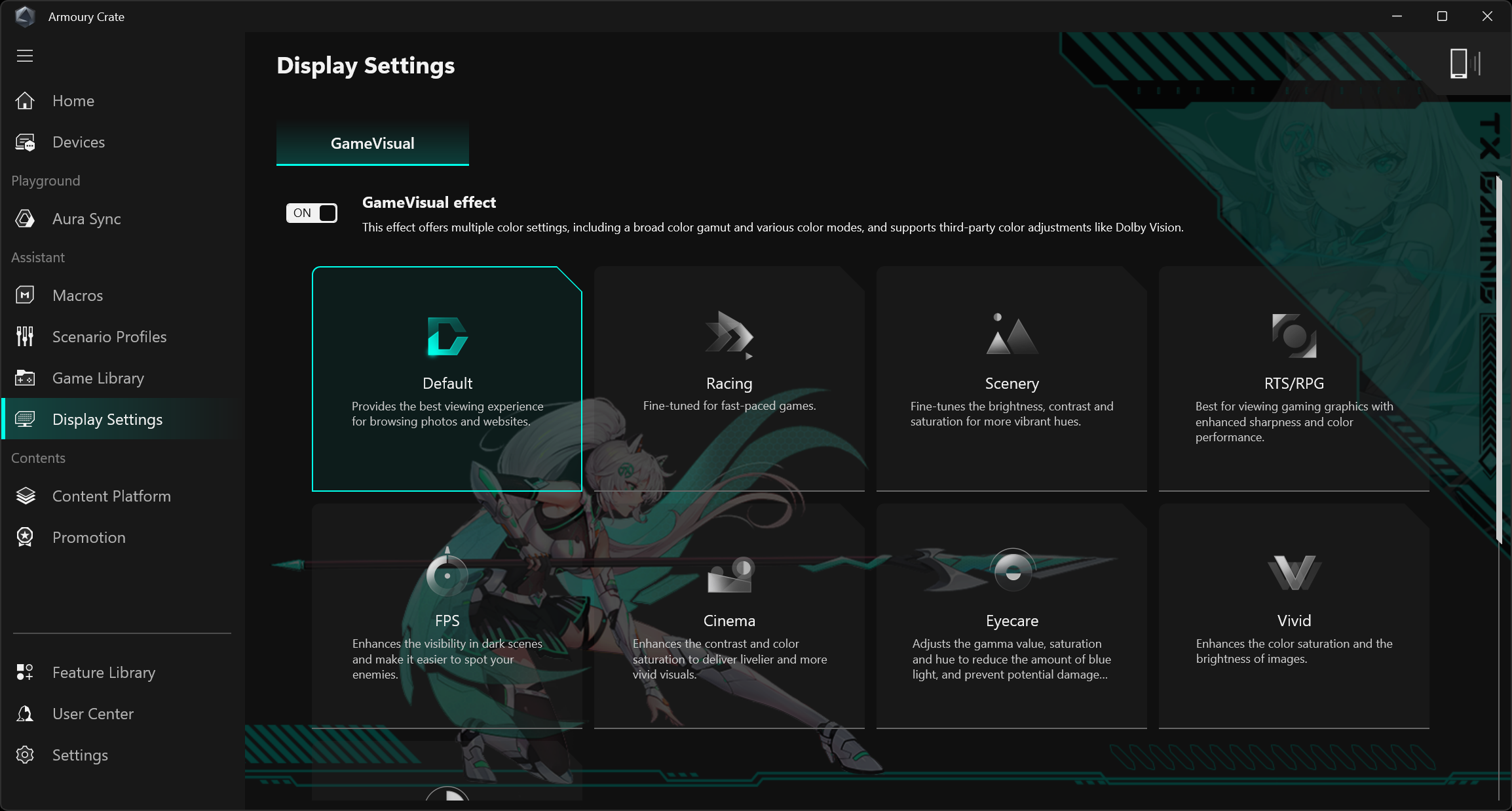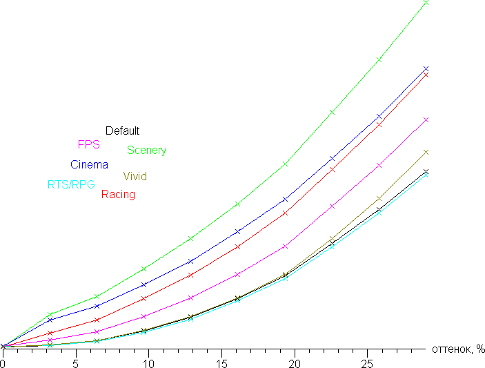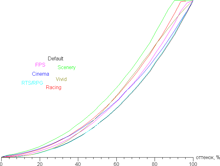 Display Settings содержит различные предустановки настроек дисплея для разных ситуаций.