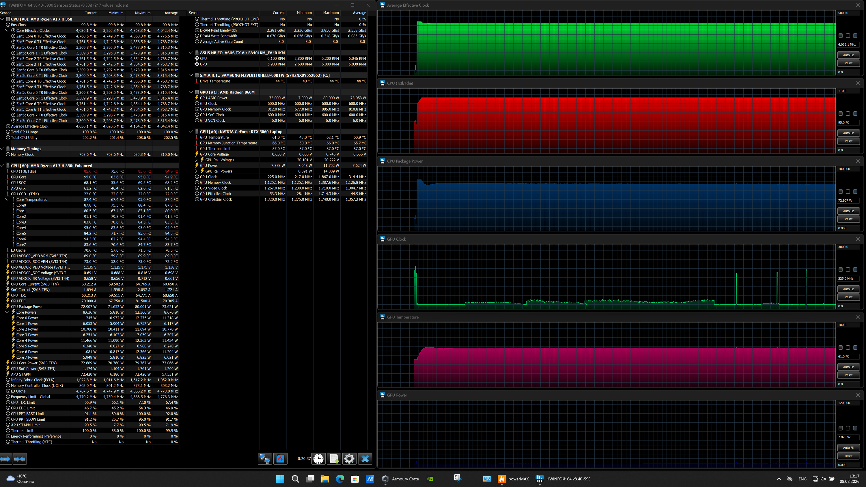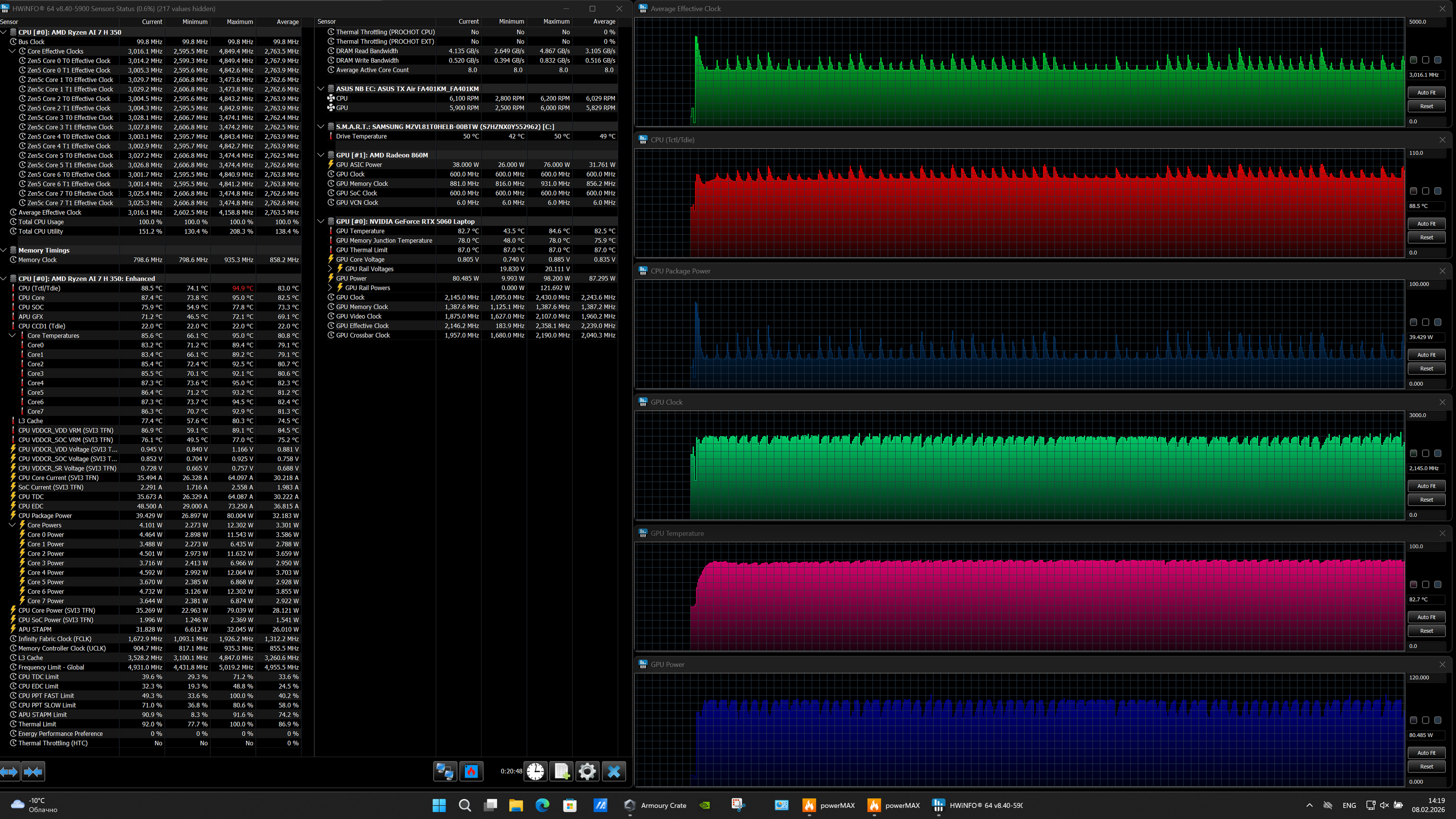 | Видеоподсистема | интегрированная: AMD Radeon 860M (8 ядер, 3,0 ГГц) дискретная: Nvidia GeForce RTX 5060 Laptop с 8 ГБ GDDR7, 1,5—2,5 ГГц, 75 Вт | |