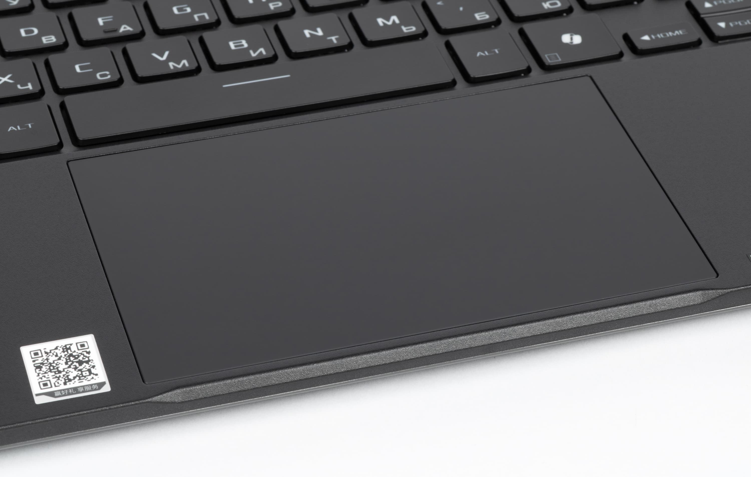 Перед клавишами лицевой панели помещается увеличенный по площади, чуть утопленный кликпад размером 121×77 мм без выделенных кнопок. Все жесты поддерживаются.