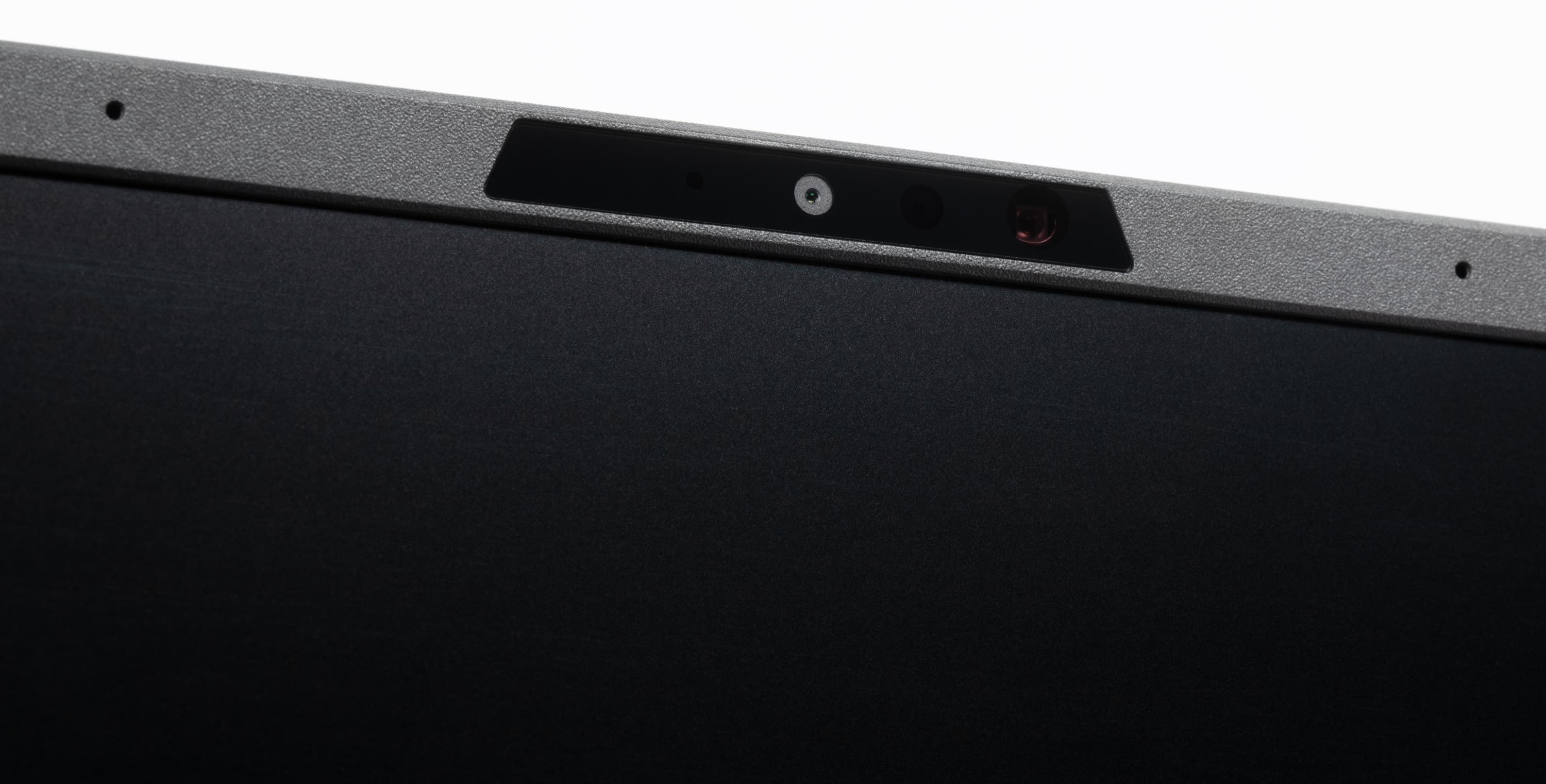 В центре верхней части экранной рамки имеется миниатюрная камера для видеоконференций, а слева и справа от нее располагаются отверстия микрофонов. Механической шторки нет.