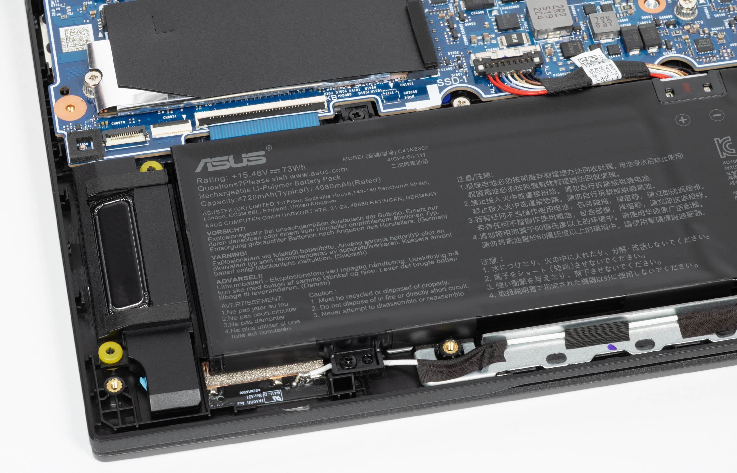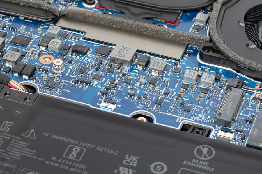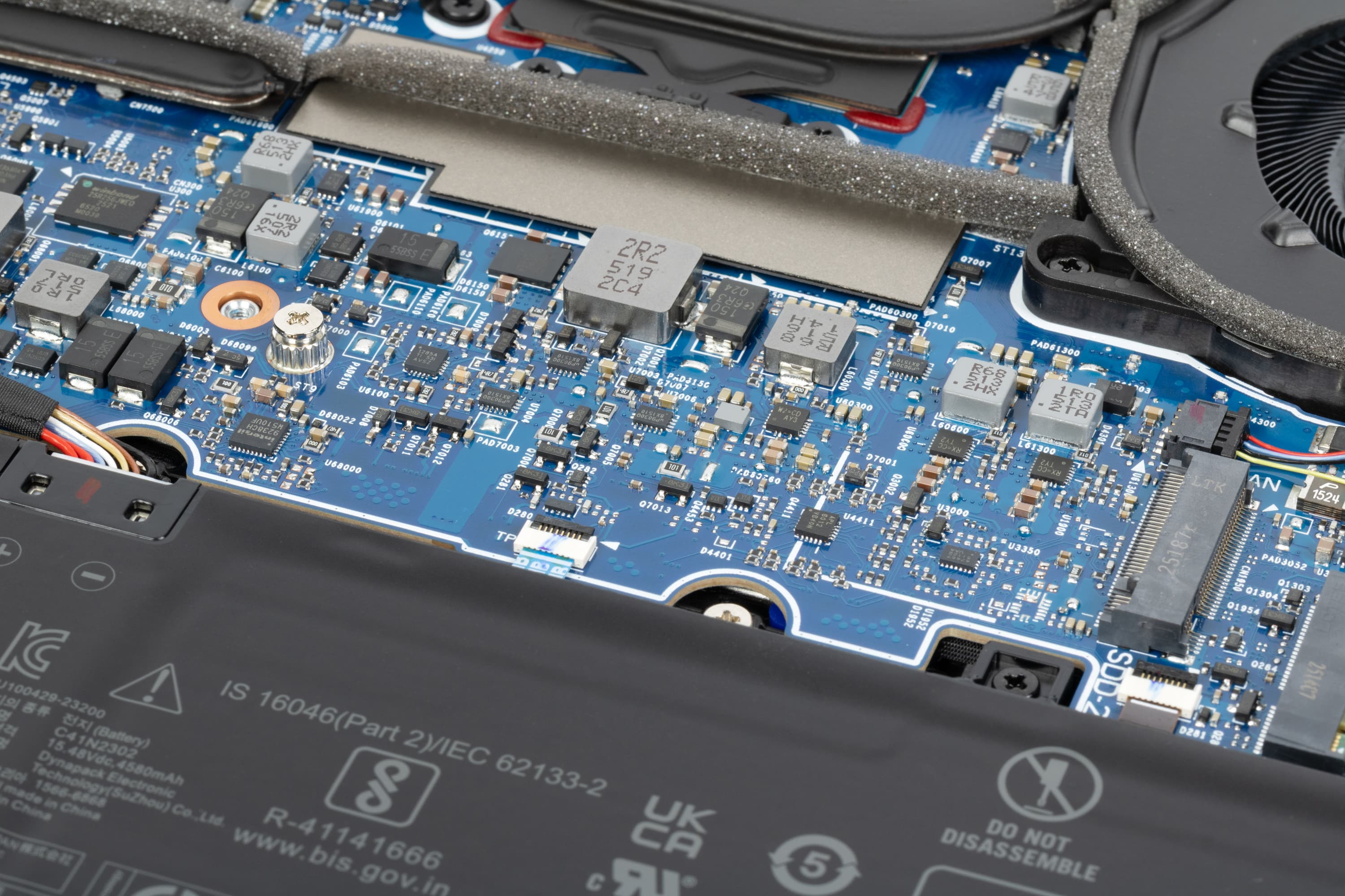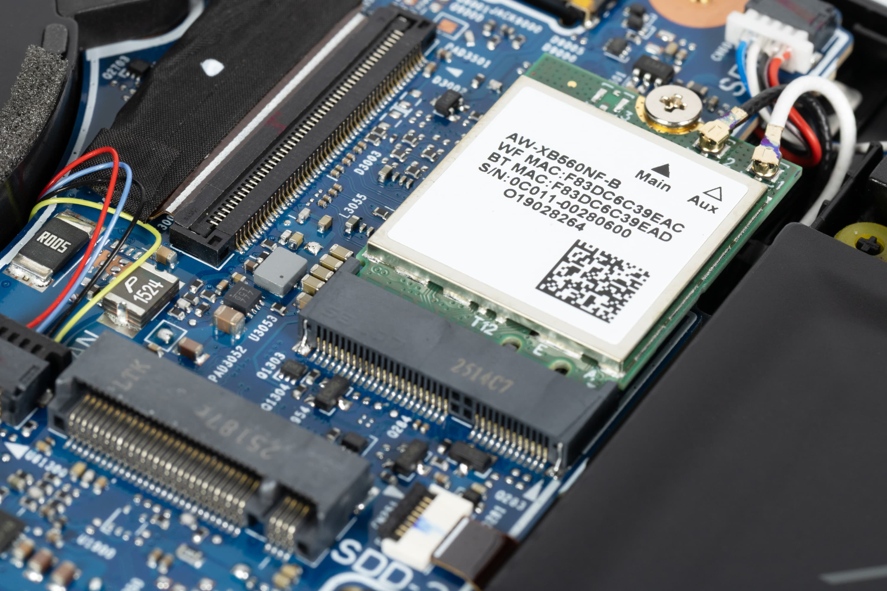 Под свободным слотом для дополнительного накопителя располагается адаптер беспроводной связи AzureWave AW-XB560NF-B (Wi-Fi 6E, 082.11ax, 2×2 MIMO).