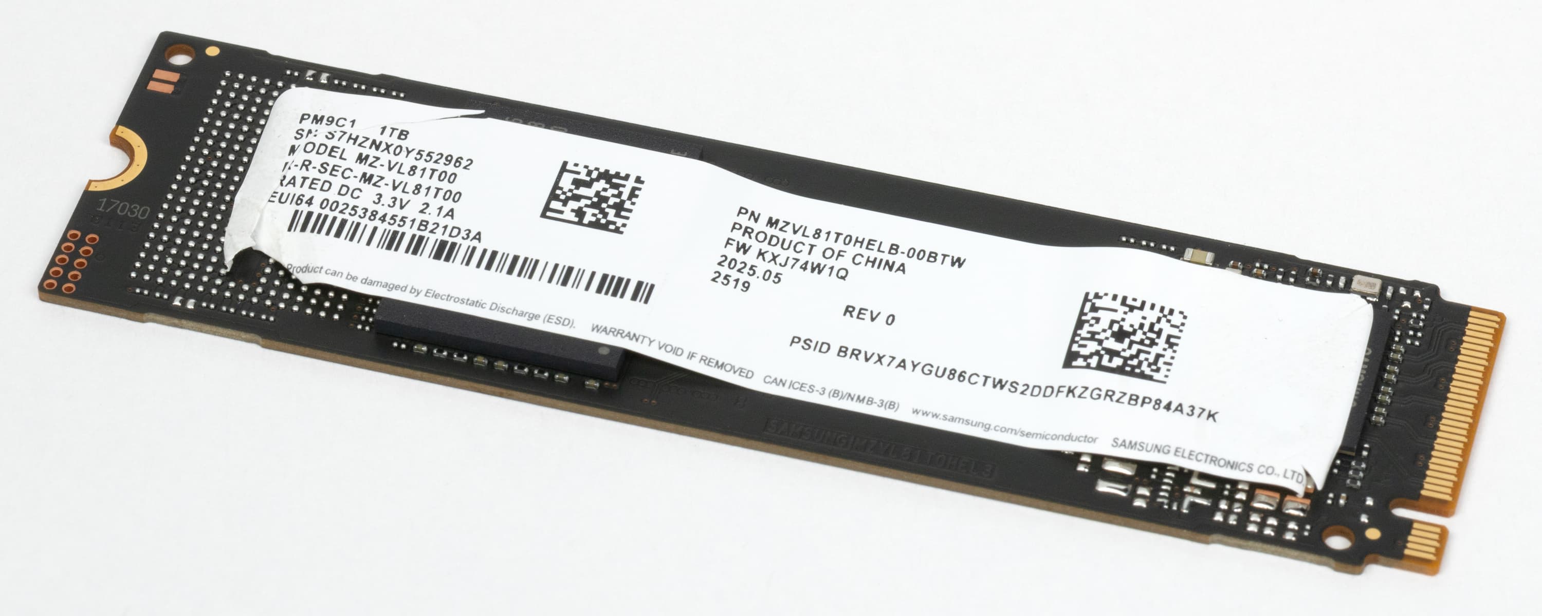 Это Samsung PM9C1 (MZVL81T00) вместимостью 1 ТБ (NVMe, M.2) с интерфейсом PCIe 4.0 ×4.