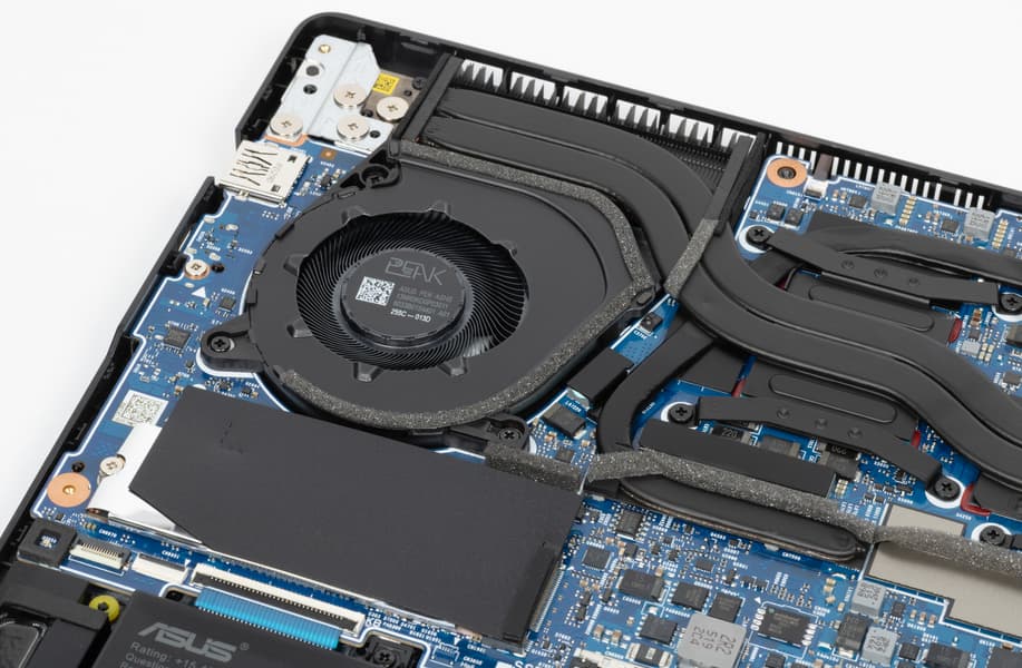 Под левым кулером (на снимке — справа) имеется второй, свободный слот M.2, в который можно установить дополнительный накопитель.