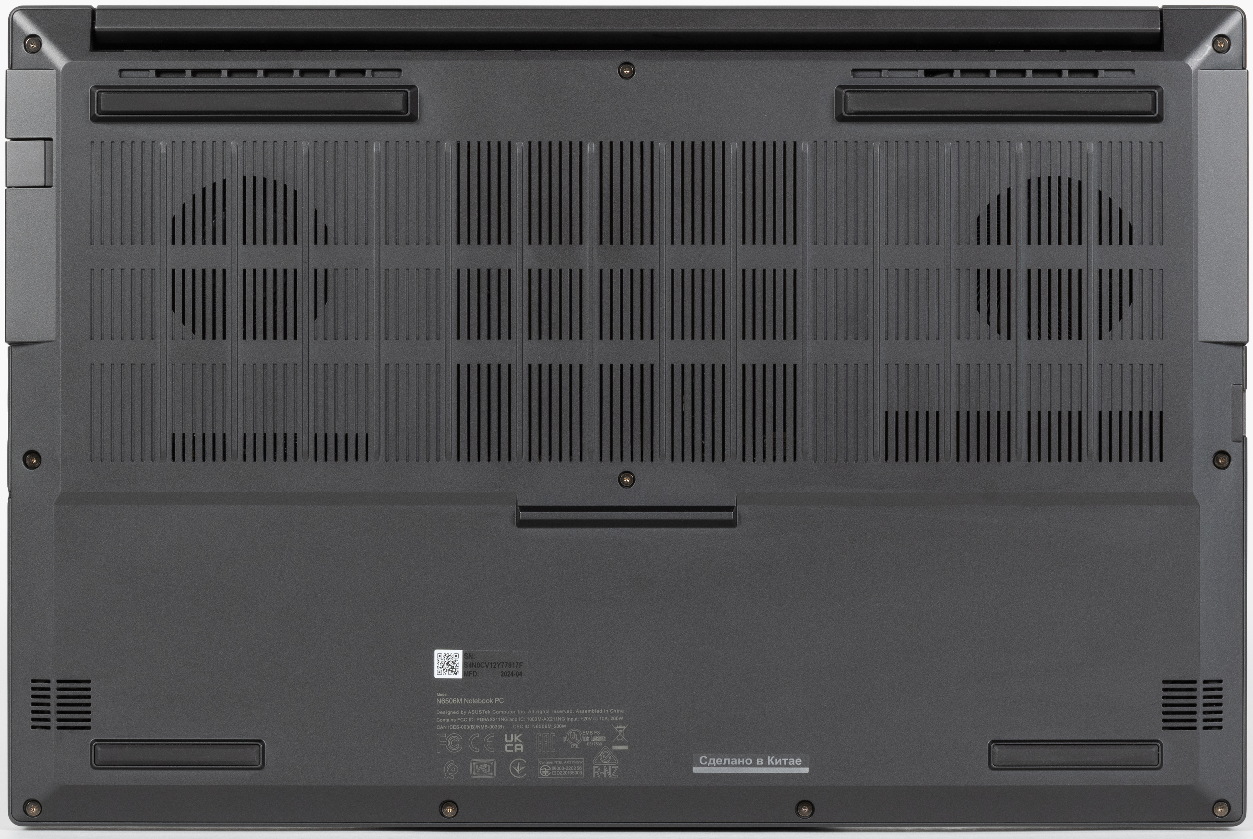 Входные щели воздухозаборников располагаются под кулерами и теплосъемными пластинами системы охлаждения. Днище крепится на десяти винтах с шестилучевым шлицем. Пломбировки нет. Вывернув винты, мы получаем доступ к компонентам аппаратной оснастки.