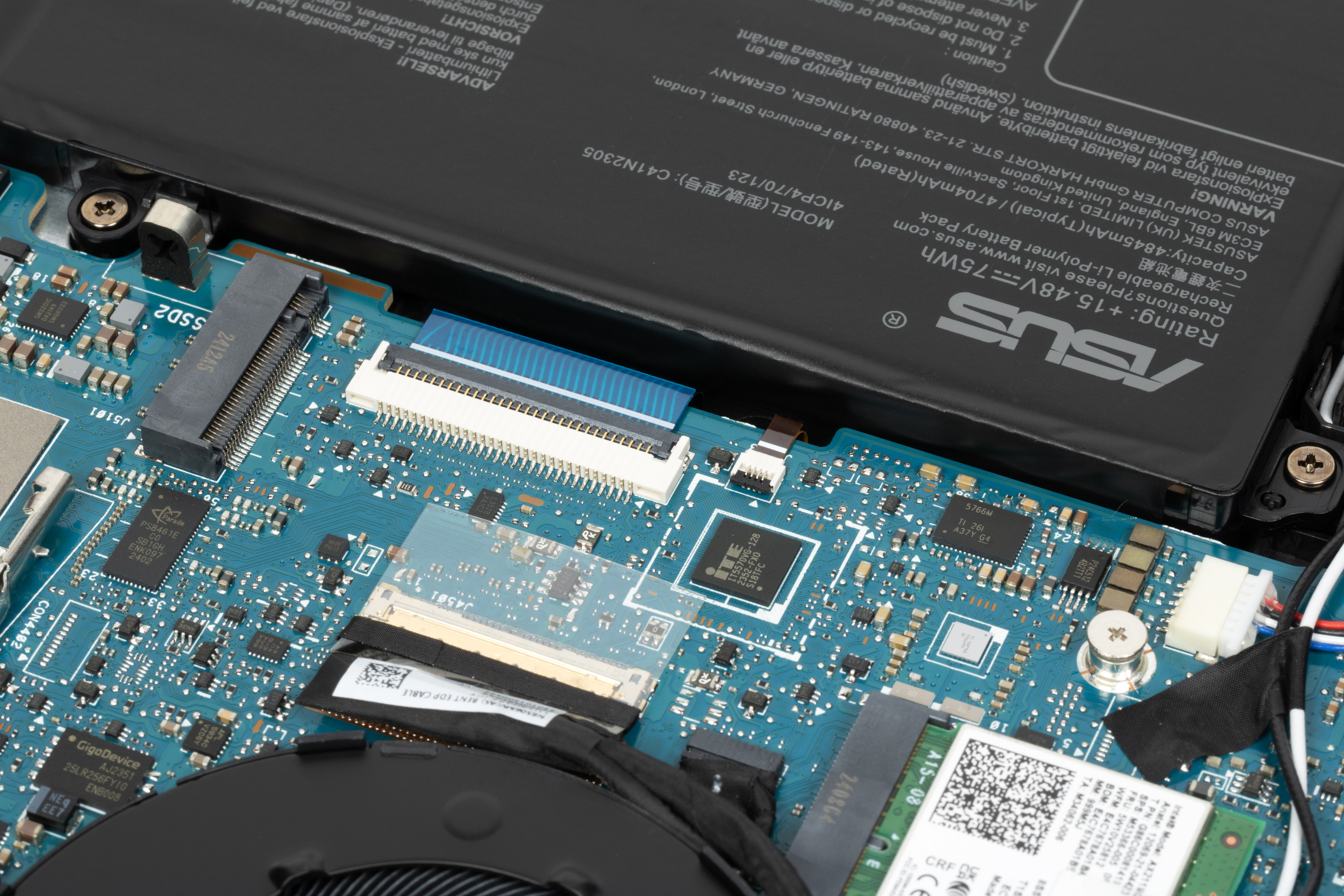 В ноутбуке Asus Vivobook Pro 15 OLED N6506MU экран представляет собой 15,6-дюймовую матрицу Lumina OLED с разрешением 2880x1620 (отчет edid-decode). Для экрана обещаны соответствие критериям VESA Certified Display HDR True Black 600 и цветовой охват 100% пространства DCI-P3. Лицевая поверхность изготовлена из зеркально-гладкой стеклянной пластины, устойчивой к появлению царапин. Улучшенных антибликовых свойств, снижающих яркость отраженных объектов, нет, однако по антибликовым свойствам экран этого ноутбука намного лучше экрана планшета Google Nexus 7 (2013). Олеофобного (жироотталкивающего) покрытия, видимо, нет. Впрочем, особых причин трогать экран тоже нет, так как он не сенсорный.
