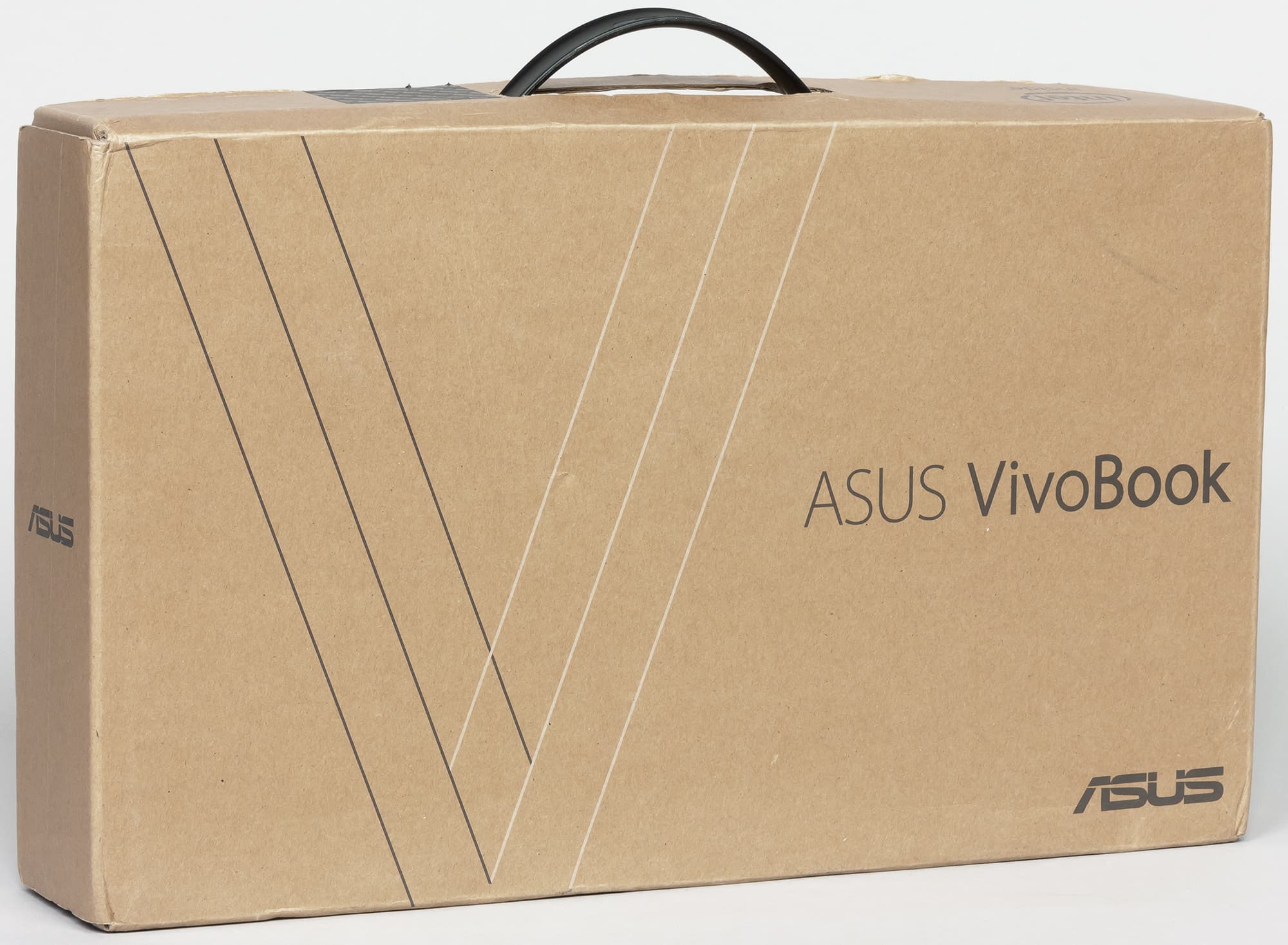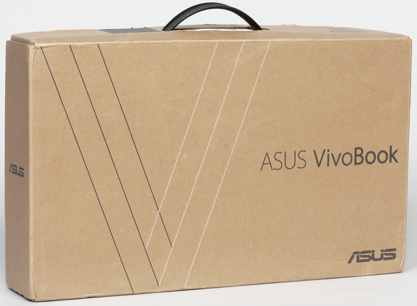 Asus VivoBook S13 S330UA поставляется в небольшой коробке из самого обычного картона, что уже само по себе говорит о том, что это доступный по цене ноутбук.