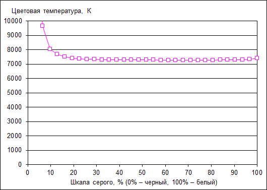 Цветовая температура ЖК-экрана ноутбука стабильна по всей шкале серого и составляет 7100 К.