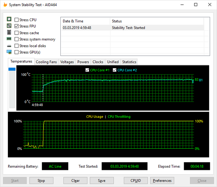 Как видим, система охлаждения в ноутбуке Asus VivoBook S13 S330UA достаточно эффективна для используемого процессора Intel Core i3-8130U.