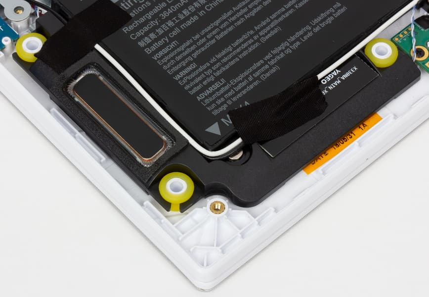 На задней панели корпуса ноутбука имеется одиннадцать винтиков, которые можно открутить, чтобы снять нижнюю панель. Это позволяет получить доступ к SSD, вентилятору системы охлаждения, аккумуляторной батарее и Wi-Fi-модулю.