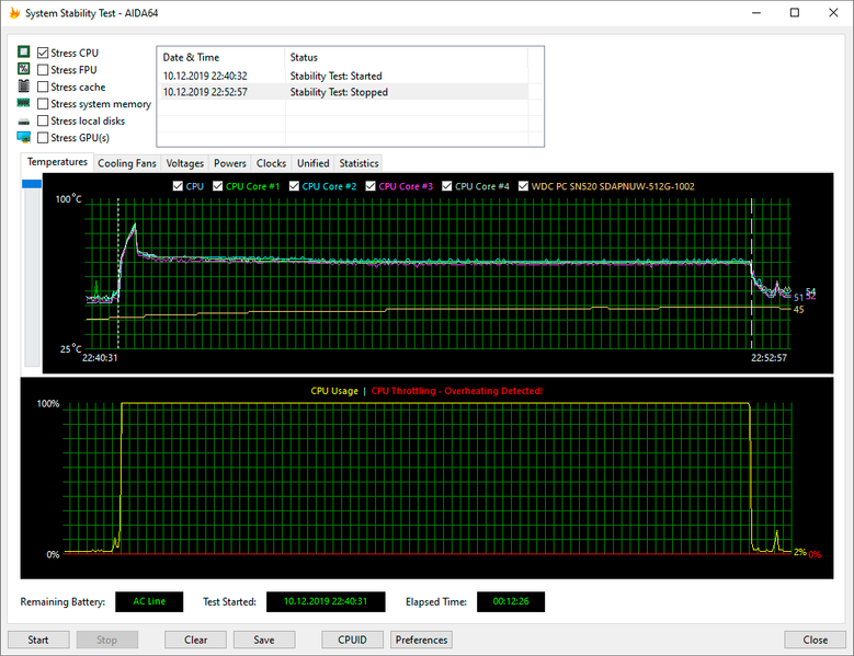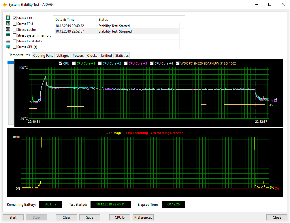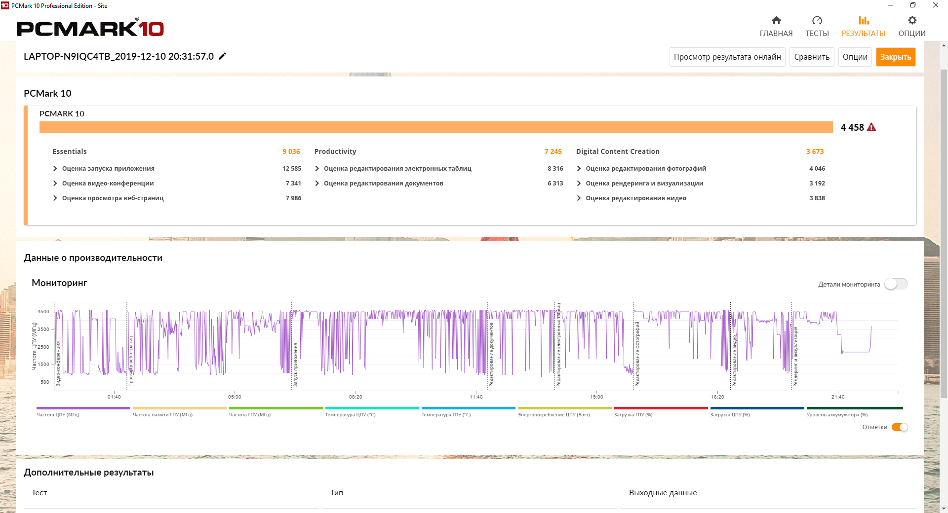 Сначала ноутбук был протестирован в режиме максимальной производительности с подключенным адаптером питания.