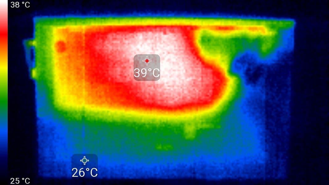 Ниже приведены термоснимки, полученные после долговременной работы ноутбука под максимальной нагрузкой на CPU и GPU: