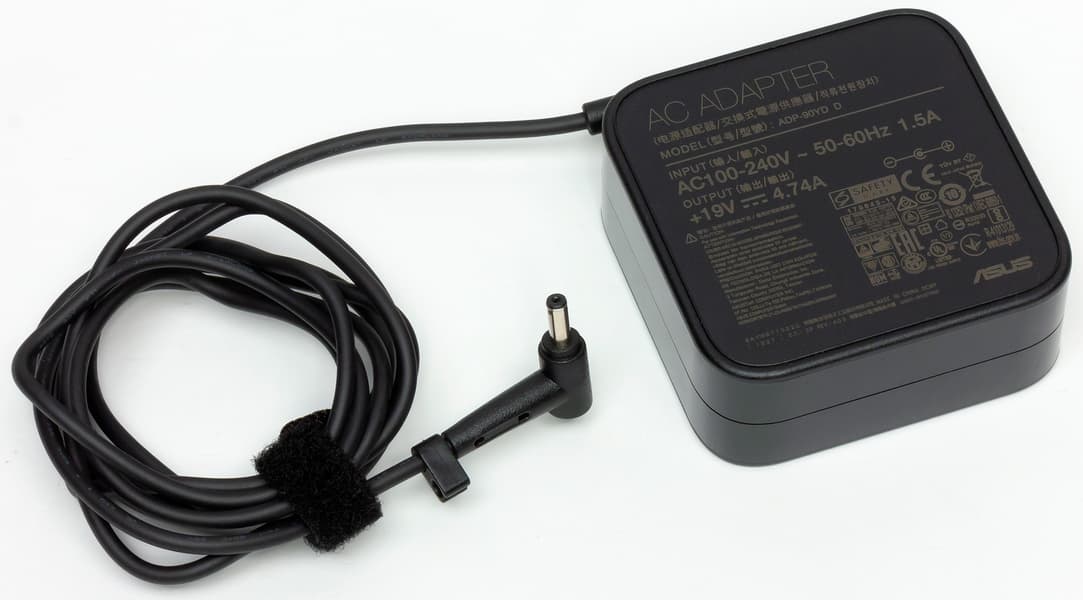 Ноутбук Asus VivoBook S532F комплектуется адаптером питания мощностью 90 Вт (19,0 В; 4,74 A), массой 234 грамма и длиной неотключаемого кабеля 1,8 метра.