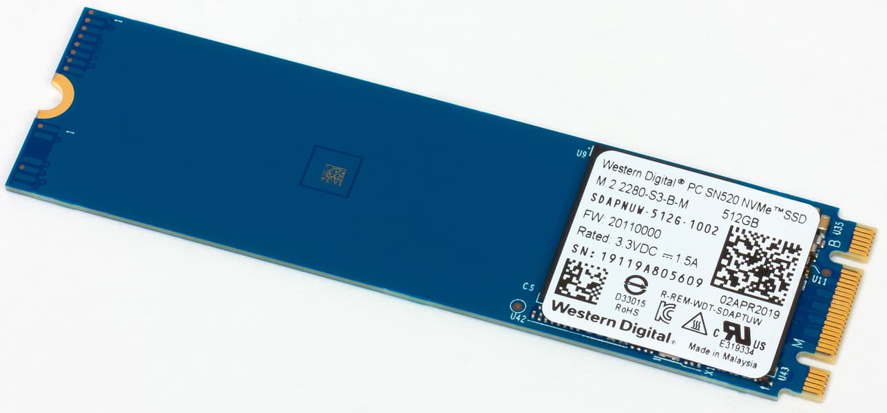 И NVMe-накопитель здесь такой же — SSD Western Digital модели SN520 SDAPNUW-512G-1102 объемом 512 ГБ.