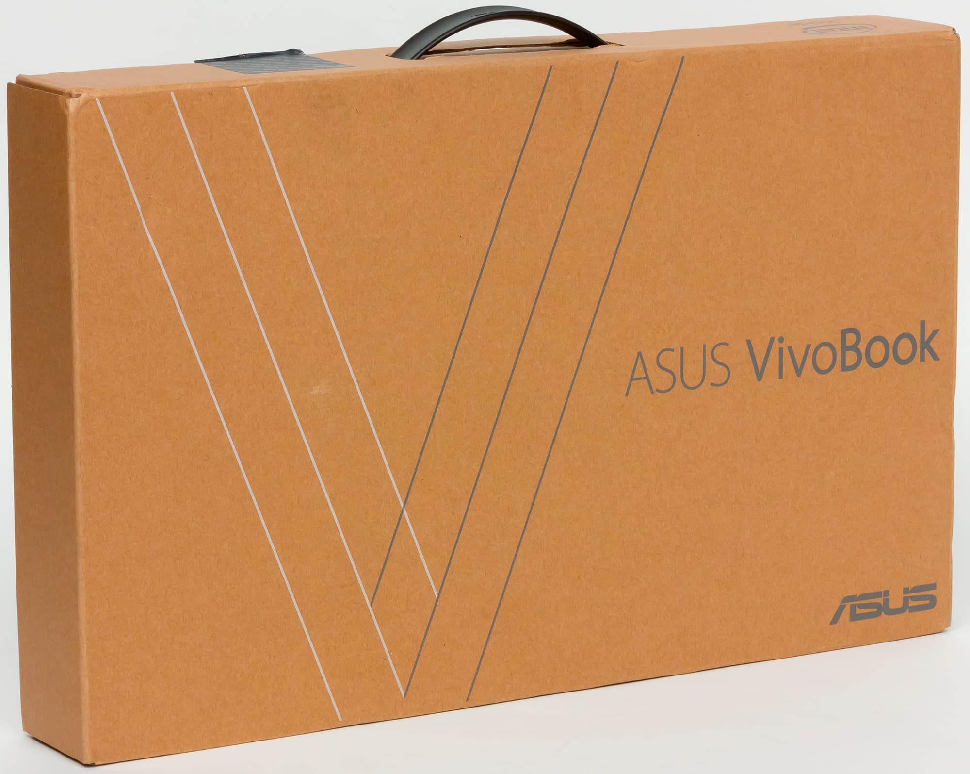Ноутбук запечатан в компактную картонную коробку, оснащенную пластиковой ручкой для переноски. Информации на коробке — самый минимум, есть только название серии и маркировка модели с серийным номером на небольшой наклейке.