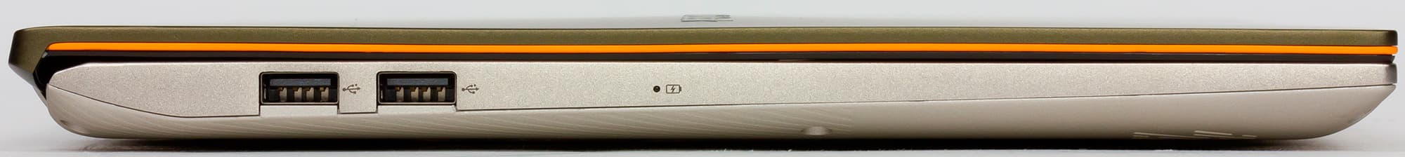 Слева — только два порта USB 2.0 и индикатор зарядки.