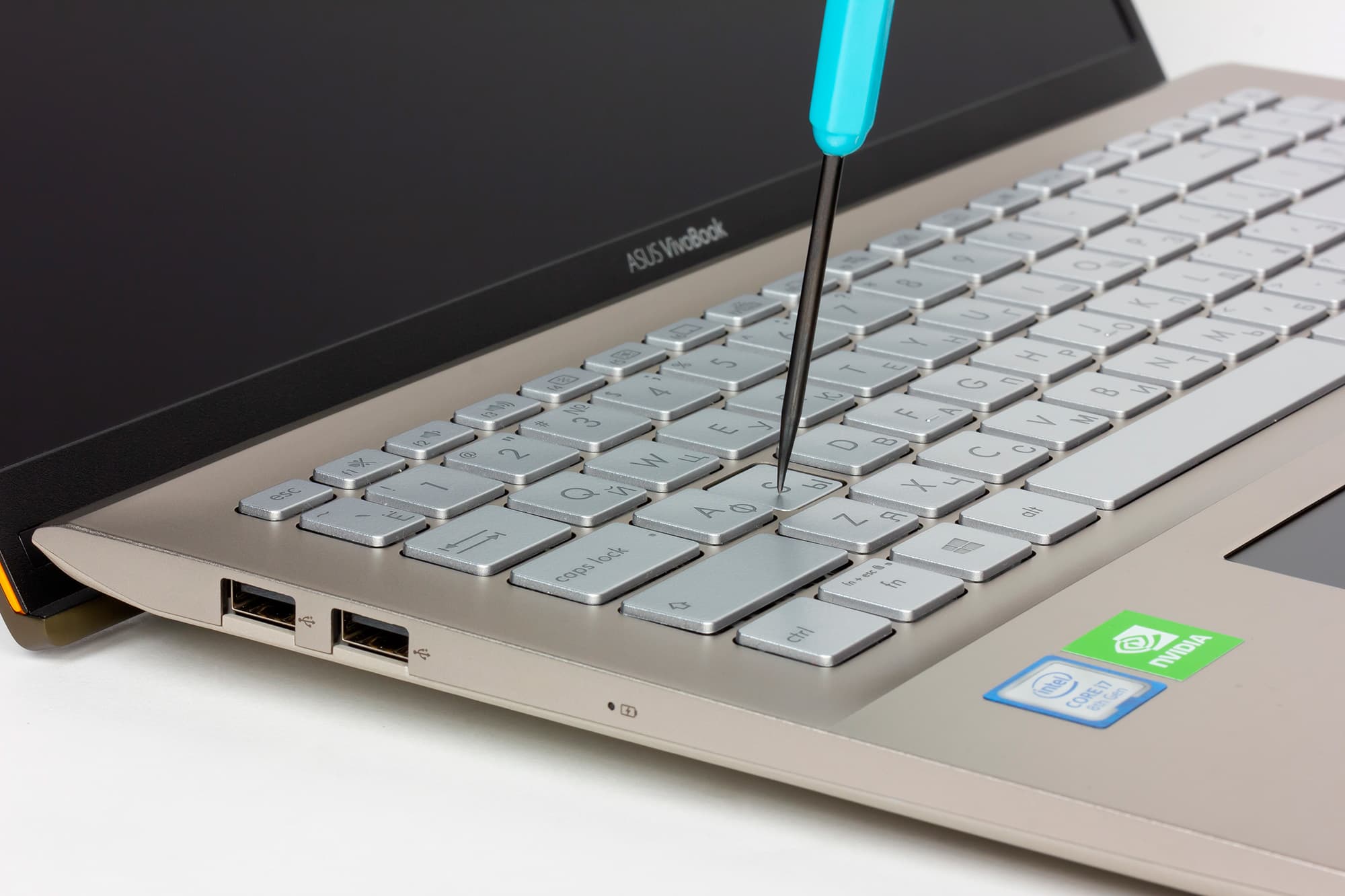В плане устройств ввода отличий у Asus VivoBook S532F от ZenBook 14 UX434F нет, если не считать блок цифровых клавиш у героя сегодняшнего обзора, что вполне логично из-за увеличенных габаритов S532F. Обе модели оснащаются клавиатурами мембранного типа с основными слегка вогнутыми клавишами размерами 15×15 мм. Ход клавиш составляет 1,4 мм.