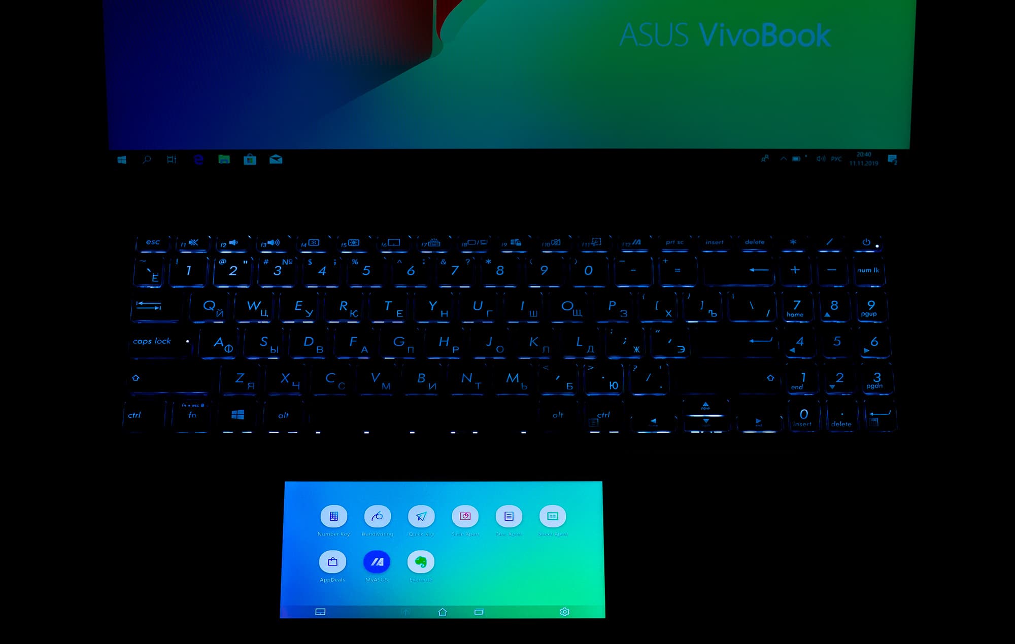 Дополнительный дисплей ScreenPad 2.0 здесь точно такой же и наделен такой же функциональностью, как у ZenBook 14 UX434F.
