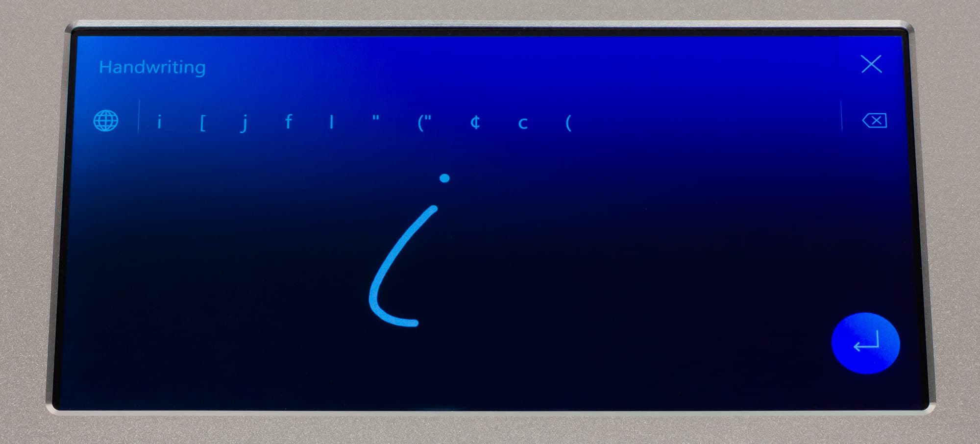 Матовая поверхность экрана-тачпада и небольшой размер пикселей у него приводят к появлению выраженного «кристаллического» эффекта — микроскопической вариации яркости и цвета, меняющейся при малейшем изменении угла обзора. Этот эффект настолько сильный, что фактическая четкость этого экрана ниже возможной для такого разрешения. Основной экран, напротив, характеризуется высокой четкостью и отсутствием «кристаллического» эффекта.