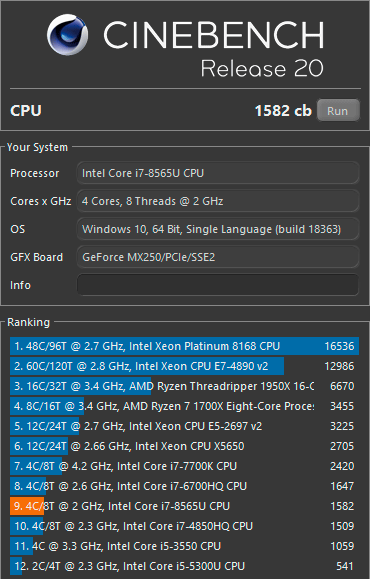 Здесь установлен такой же 14-нанометровый четырехъядерный процессор Intel Core i7-8565U с поддержкой Hyper-Threading, работающий в частотном диапазоне от 1,8 до 4,6 ГГц при максимальном уровне энергопотребления 25 ватт.