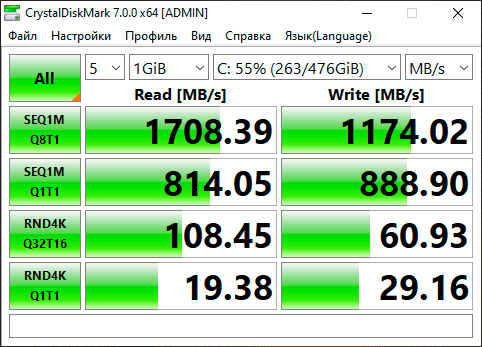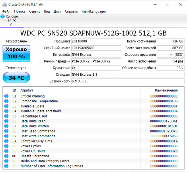 | Накопитель | 1×SSD 512 ГБ (WDC PC SN520 SDAPNUW-512G-1102, M.2 2280, PCIe 3.0 x2) | |