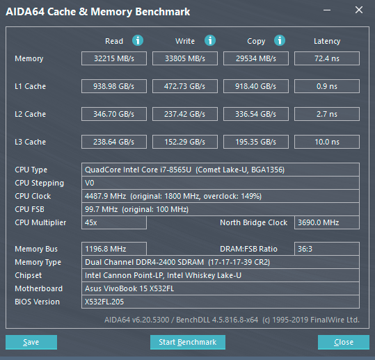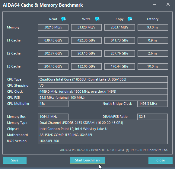 Поэтому пропускная способность такой памяти немного выше, чем у «оперативки» ZenBook 14 UX434F, а латентность меньше сразу на 22%.