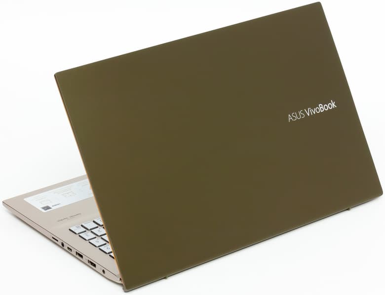 Наша версия Asus VivoBook S532F выполнена в расцветке «Зеленый мох» и выглядит весьма необычно и привлекательно. Цвет внутренней поверхности панели ноутбука скорее золотистый, чем зеленый, а вот внешняя панель дисплея действительно темно-зеленоватая.