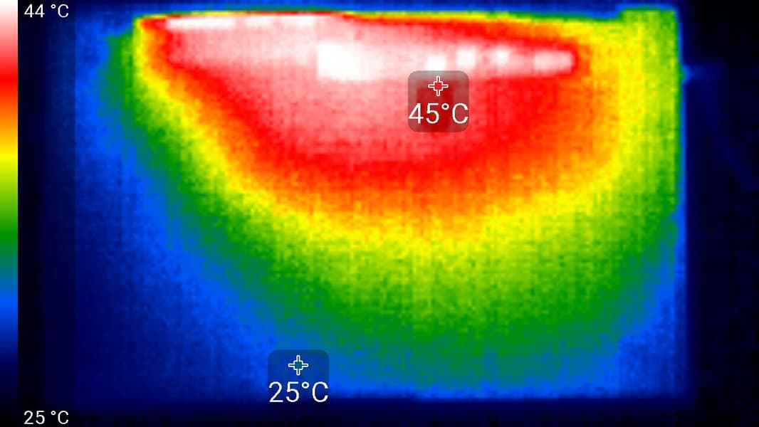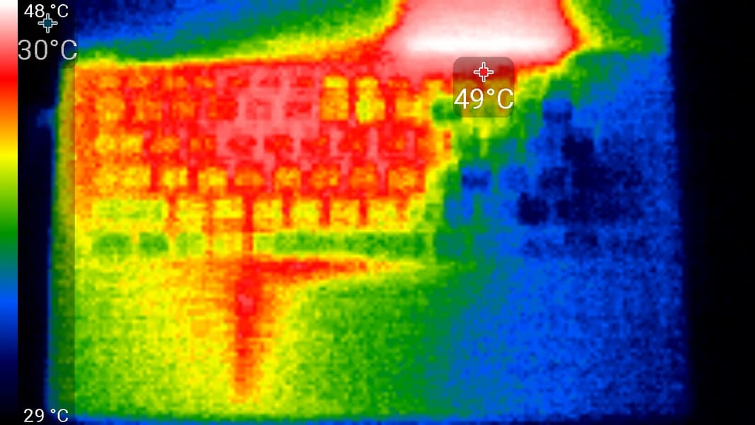 Ниже приведены термоснимки, полученные после долговременной работы ноутбука под максимальной нагрузкой на CPU и GPU: