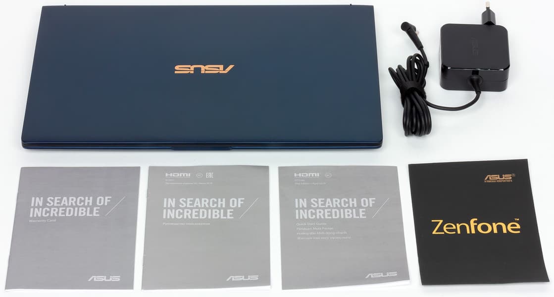 Комплектация ноутбука такая же аскетичная, как и его упаковка: адаптер питания и несколько кратких инструкций.