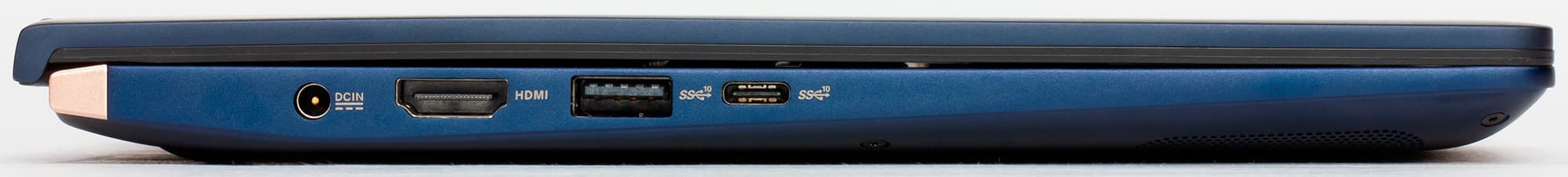 Слева можно найти разъем для подключения адаптера питания, видеовыход HDMI и два порта USB 3.1 Gen2 (Type-A и Type-C).