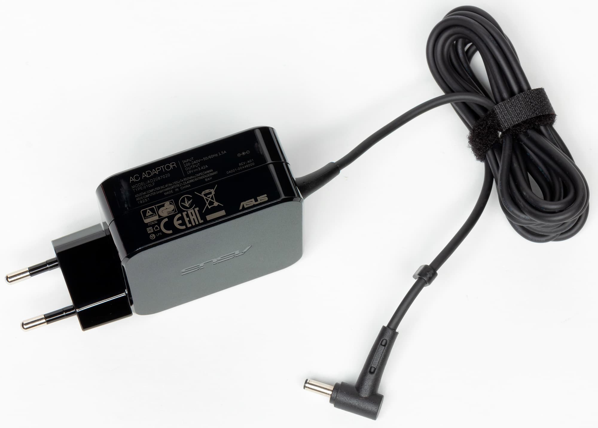 Ноутбук оснащается адаптером питания мощностью 65 Вт (19,0 В; 3,42 A), массой 200 граммов и с длиной кабеля 2,2 метра.
