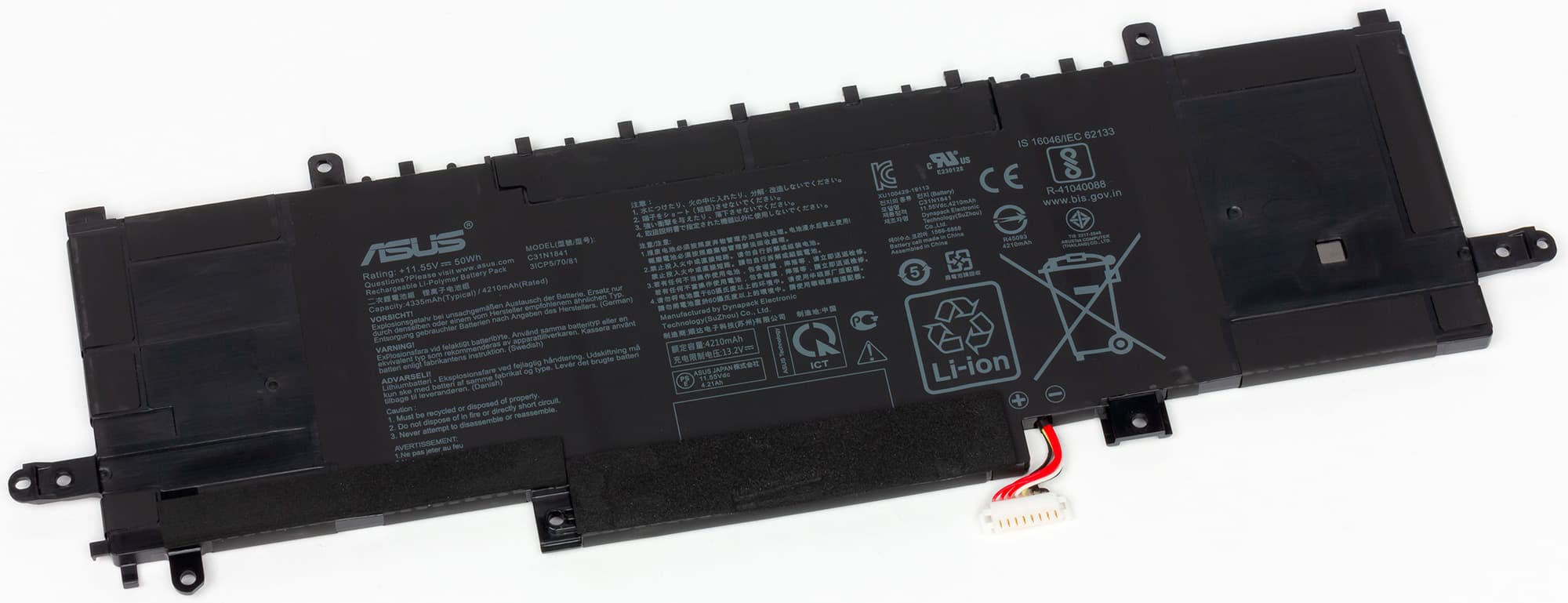 С уровня заряда 5% до 99% он заряжает встроенный в Asus ZenBook 14 UX434F литий-полимерный аккумулятор емкостью 50 Вт·ч (4335 мА·ч) за 1 час и 23 минуты.