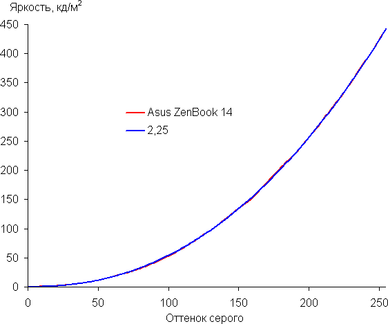 Аппроксимация полученной гамма-кривой дала показатель 2,25, что близко к стандартному значению 2,2, при этом реальная гамма-кривая мало отклоняется от аппроксимирующей степенной функции: