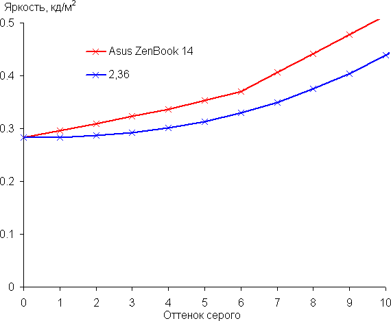 Дополнительный экран-тачпад. Прирост яркости между соседними полутонами: