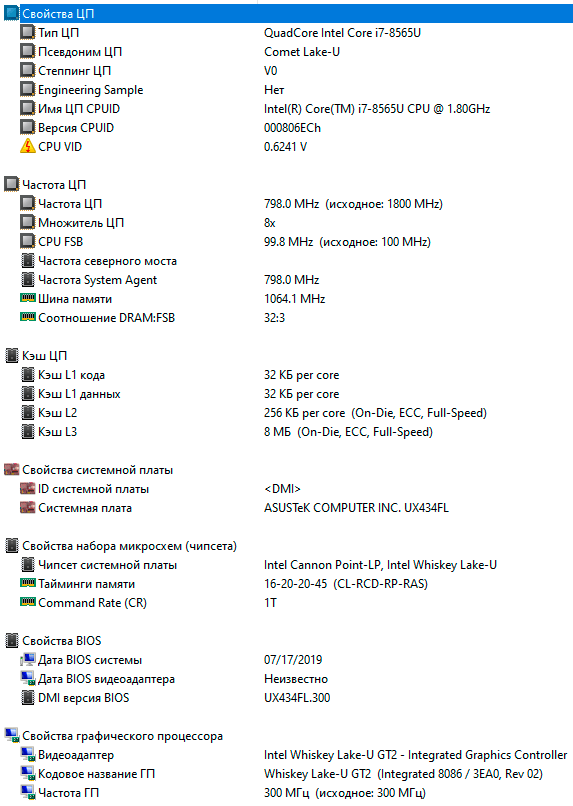| Процессор | Intel Core i7-8565U (Comet Lake, 1,8 ГГц (с Turbo Boost до 4,6 ГГц), 4 ядра, кэш 8 МБ, 25 Вт) | |