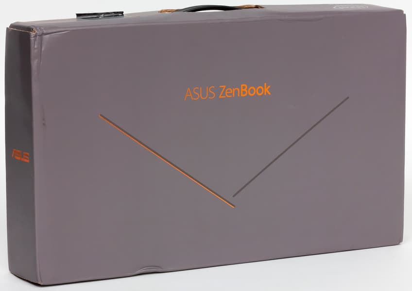 Asus ZenBook 14 UX434F поставляется в компактной коробке, оформленной в минималистичном стиле и имеющей пластиковую ручку для переноски.