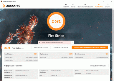 А вот в 3D-тестах мы получили какие-то странные результаты, когда при отключении от ноутбука адаптера питания производительность дискретной видеокарты Nvidia GeForce MX250 не только не снижалась, но и чуть-чуть подрастала во всех четырех бенчмарках.