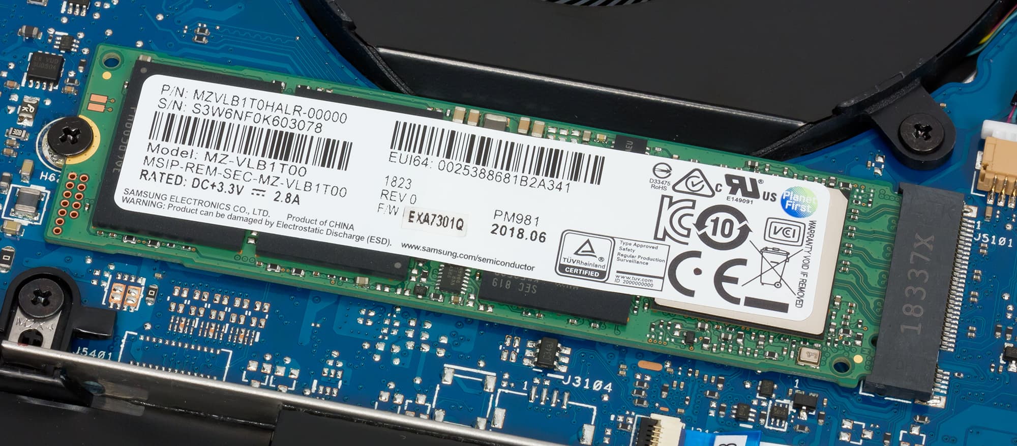 Как уже отмечалось, подсистема хранения данных ноутбука Asus ZenBook 15 UX533FD представляет собой NVMe SSD-накопитель Samsung MZVLB1T0HALR емкостью 1 ТБ с интерфейсом PCIe 3.0 x4.