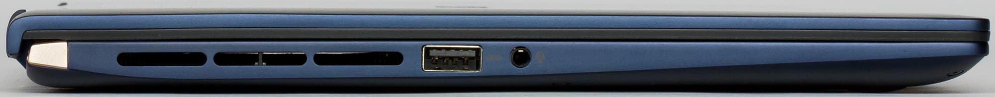 На левом торце корпуса ноутбука расположены порт USB 3.0 и комбинированный аудиоразъем.