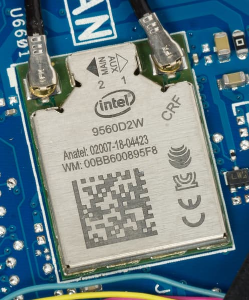 Коммуникационные возможности ноутбука определяются наличием беспроводного сетевого адаптера Intel Wireless-AC 9560 (M.2 2230, CNVi). Этот двухантенный модуль поддерживает частотные диапазоны 2,4 и 5 ГГц, соответствует спецификациям IEEE 802.11b/g/n/ac и Bluetooth 5.0.